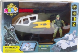 Helikopteren har en roterende hovedrotor, bevægelige dele af udrustningen og stabile meder til landing. Den kvalitetsrige plast er stødsikker, så sættet egner sig til leg både i stuen og i haven. En fantastisk gave til børn, der elsker militært udstyr og actionlege.