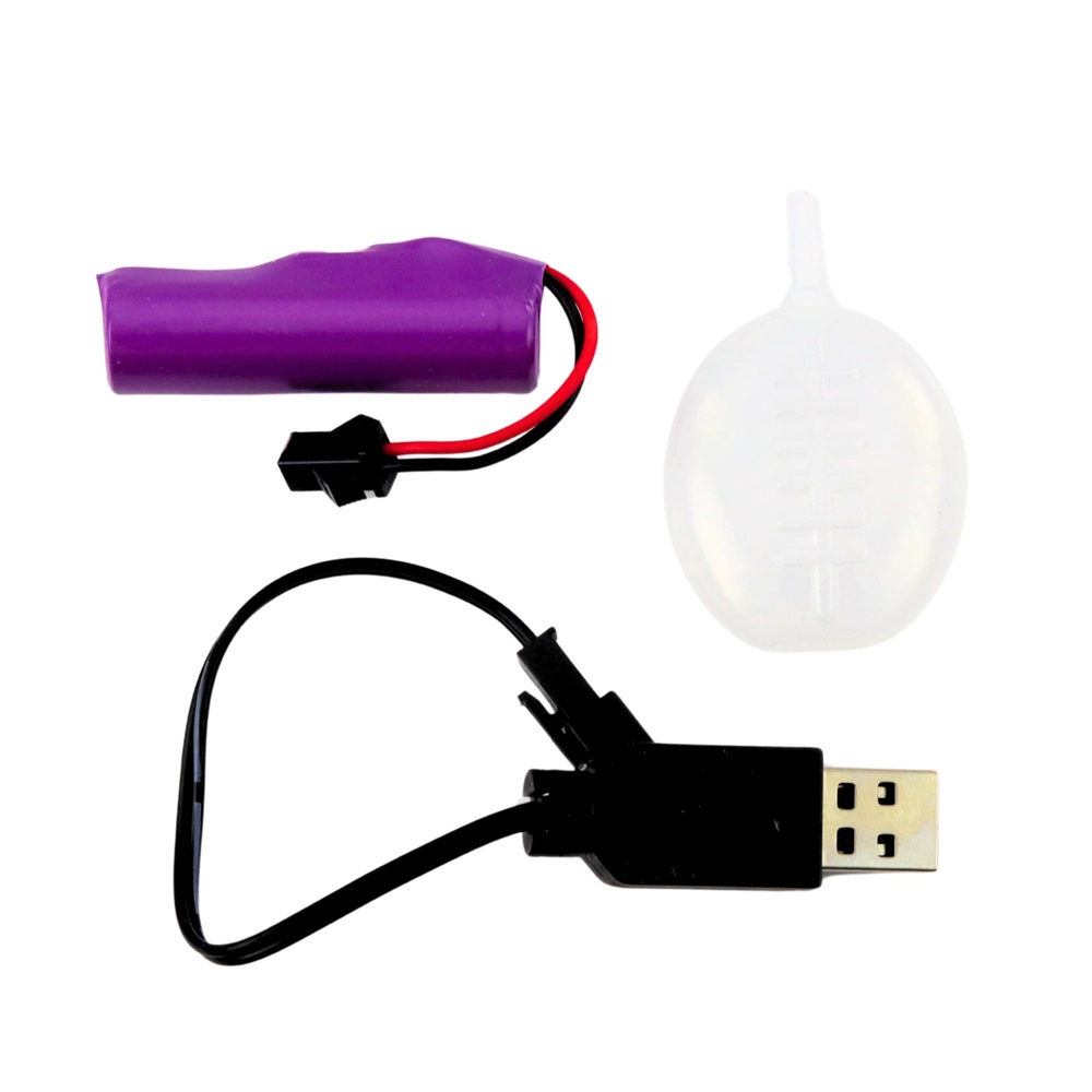 - Genopladeligt batteri 3,7 V 500 mAh og USB-opladning medfølger.