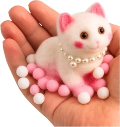 Det realistiske look med pelsimitation, de fine hvid‑lyserøde pomponer og et perlehalsbånd gør den ikke kun til et antistress-tilbehør, men også til en dekorativ pynt på skrivebordet eller hylden. Velegnet til både børn og voksne, ideel til sensoriske øvelser, håndterapi og udvikling af finmotorik.