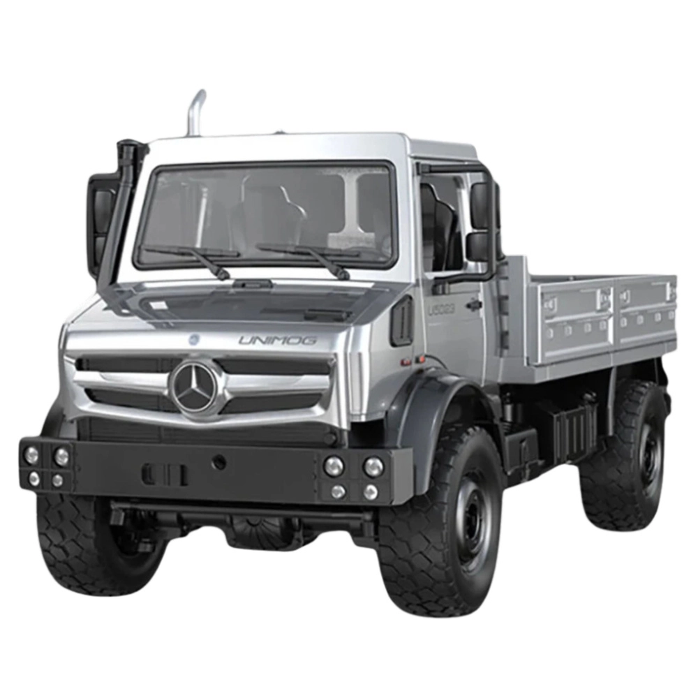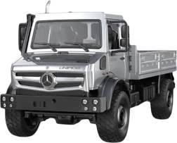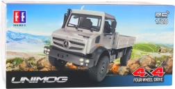 RC terrængående bil MERCEDES-BENZ UNIMOG 4x4 er en detaljeret model med metaldele, åbnbare døre og motorhjelm. Proportionel gas og styring muliggør jævne starter, bremsning og præcis styring. Den stabile 2,4 GHz sender giver pålidelig, interferensfri kontrol med rækkevidde op til 25 m.