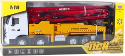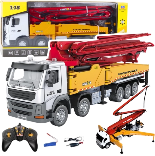 Denne metal RC byggemixer med pumpe efterligner troværdigt arbejdet fra en ægte bygge-lastbil. En elektrisk drevet platform (630°), udtrækkelig udligger på 120 cm og støtter for stabilitet gør det muligt at udføre realistiske “bygge”-opgaver. Med ét tryk aktiverer du vandforstøvning, som øger spillets autenticitet.
