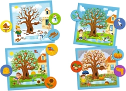 Dette kloge og underholdende spil guider de små spillere til at genkende de karakteristiske træk ved de enkelte årstider. Børn sorterer og matcher jetoner til de rigtige plader, udvider deres ordforråd og lærer at lægge mærke til naturens forandringer gennem hele året. De venlige illustrationer med RODZINA TREFLIKÓW-motiver fastholder opmærksomheden og understøtter glæden ved at lære.