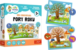Oplev en legende måde at udforske verden på med børnenes læringsspil Årstider fra serien ABC malucha med motiver fra RODZINA TREFLIKÓW. Smukt illustrerede kort og jetoner hjælper børn med at forstå, hvad der ændrer sig i naturen om foråret, sommeren, efteråret og vinteren, samtidig med at de udvikler kognitive evner, opmærksomhed og logisk tænkning.