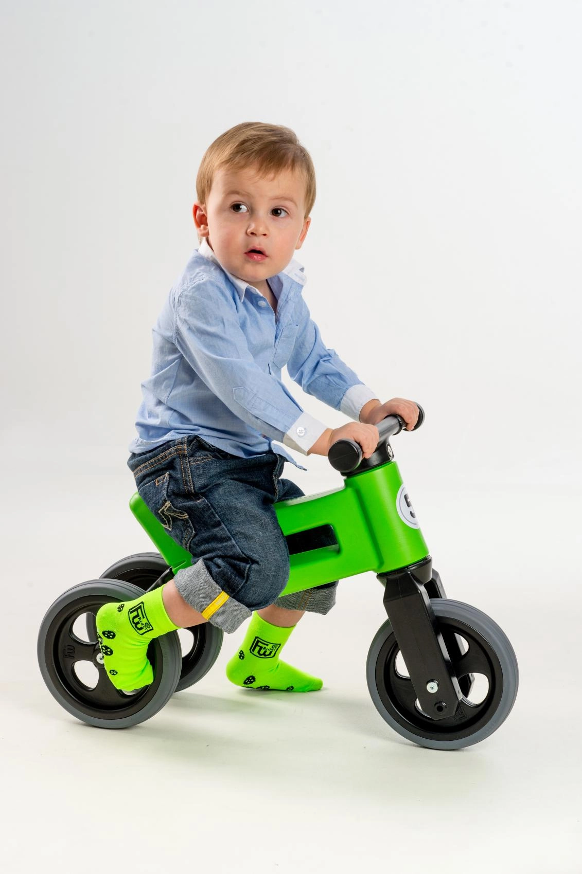 Start med en stabil trehjulet model og skift senere til en tohjulet løbecykel for at træne balancen. Alt nødvendigt medfølger i pakken.
