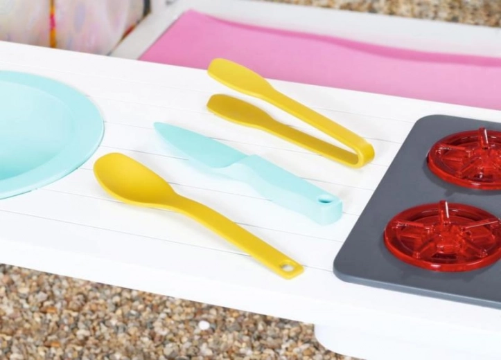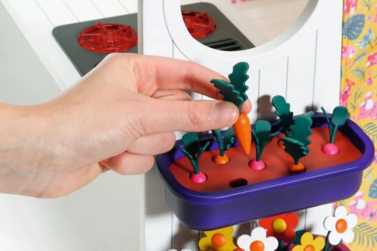 Huset er udstyret med plantekasser og en grøntsagshave til at høste ingredienser til fantasimiddage. Børn kan tilberede mad på komfuret og dække bord til deres dukker med salater og pretzels.