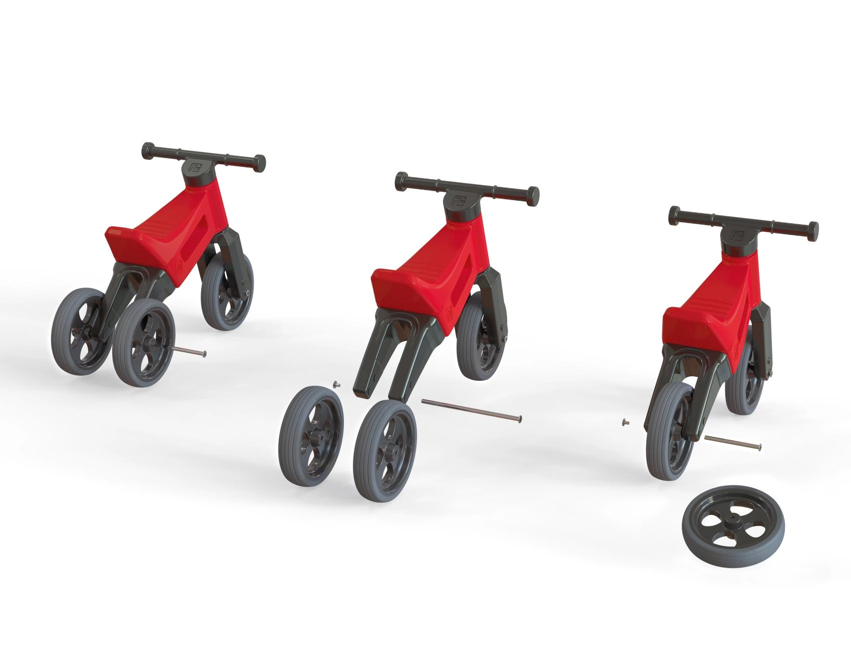 På få minutter ændrer du den stabile trehjulede til en tohjulet balancecykel. Ideel som overgang til den første cykel.