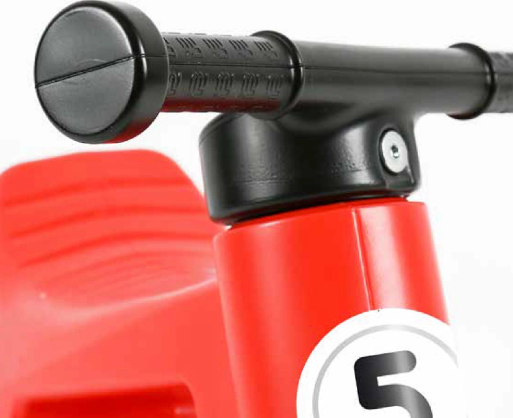 Begrænset styreudslag forhindrer overlægning af styret, og de brede greb beskytter barnets hænder.