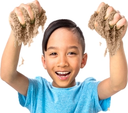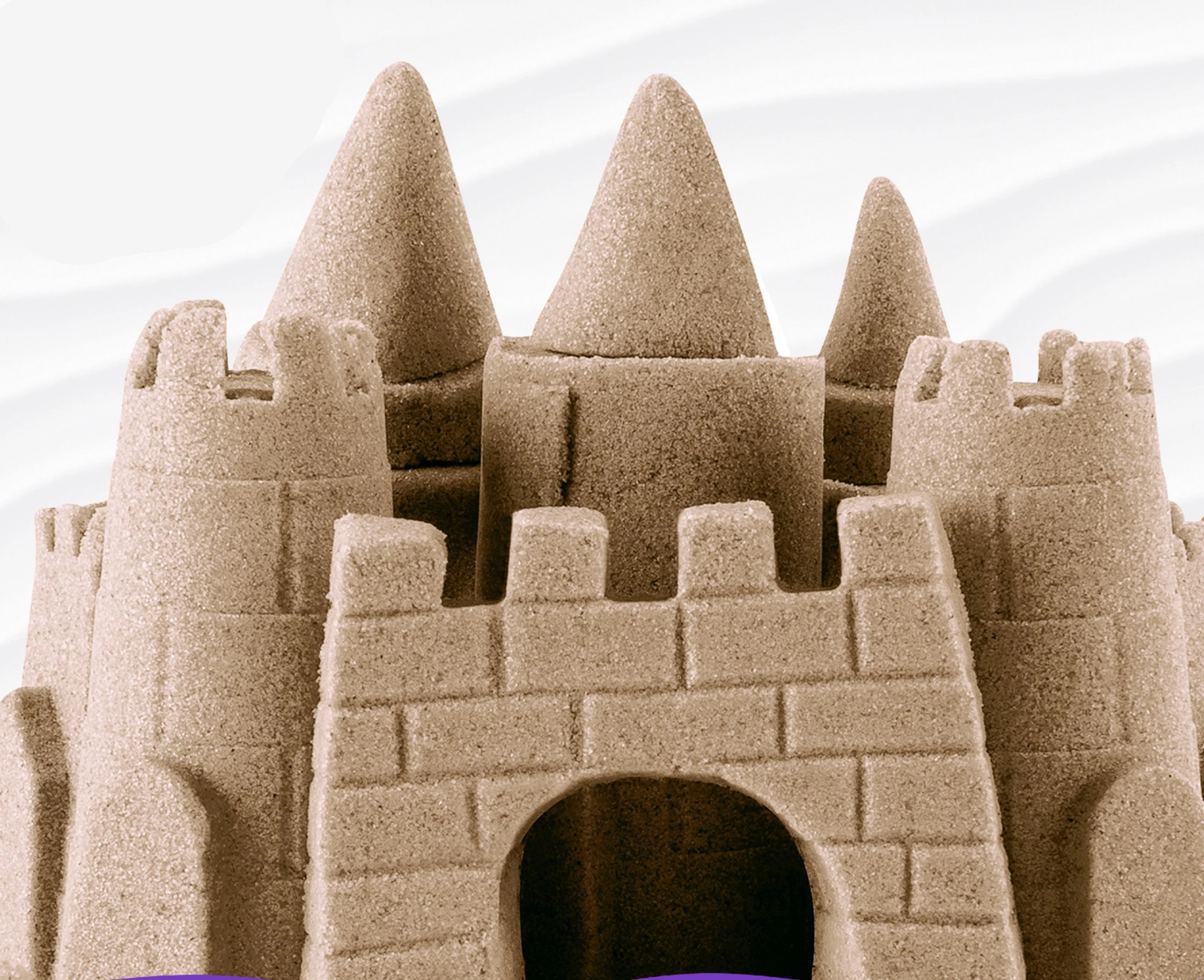 Kornene tiltrækker hinanden, så sandet er sammenhængende, formbart og mindre rodet. Ideelt til at bygge slotte, bogstaver og detaljerede former.