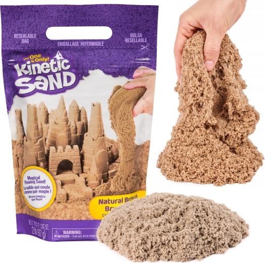 Kinetisk sand i brun nuance giver både børn og voksne en beroligende sanseoplevelse. Det er behageligt løst, men sammenhængende – det flyder langsomt mellem fingrene, men holder samtidig formen, så du kan skabe bogstaver, tårne, forme og detaljerede konstruktioner. Det tørrer ikke ud, er nemt at rydde op og støver ikke under legen.