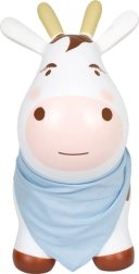 Den oppustelige hoppende ko er et sjovt og samtidig praktisk legetøj til udvikling af grovmotorik. Børn vil elske det kærtegnende design med blåt tørklæde, mens forældre vil sætte pris på den nemme vedligeholdelse og hurtige oppumpning med den medfølgende pumpe. Hoppekoen hjælper med at styrke ryg-, krops- og benmuskler og træner samtidig naturligt balance og koordination.
