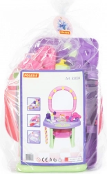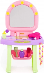 Bordet er designet til nem opbevaring af små accessories og har en spejldel til rolleleg med “frisering” og “makeup”. Takket være den stabile base og det lette materiale er det nemt at flytte og klar til sjov på ingen tid.