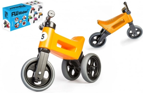 Let løbecykel FUNNY WHEELS Rider Sport 2‑i‑1 med justerbart sæde, stille hjul og sikker styring. Til børn fra 18 måneder. Fremstillet i Tjekkiet.