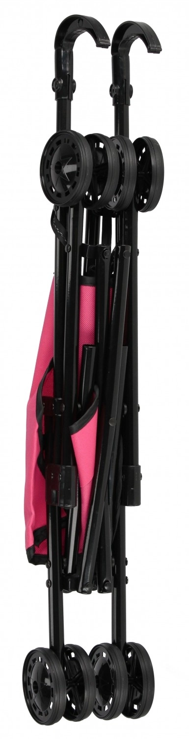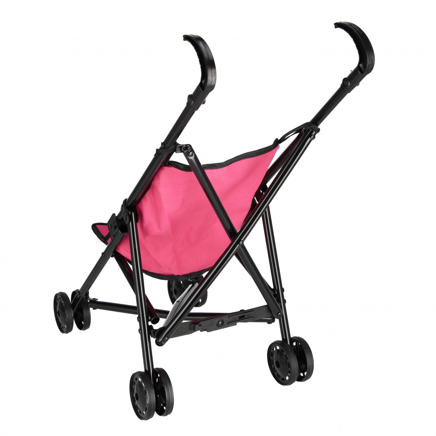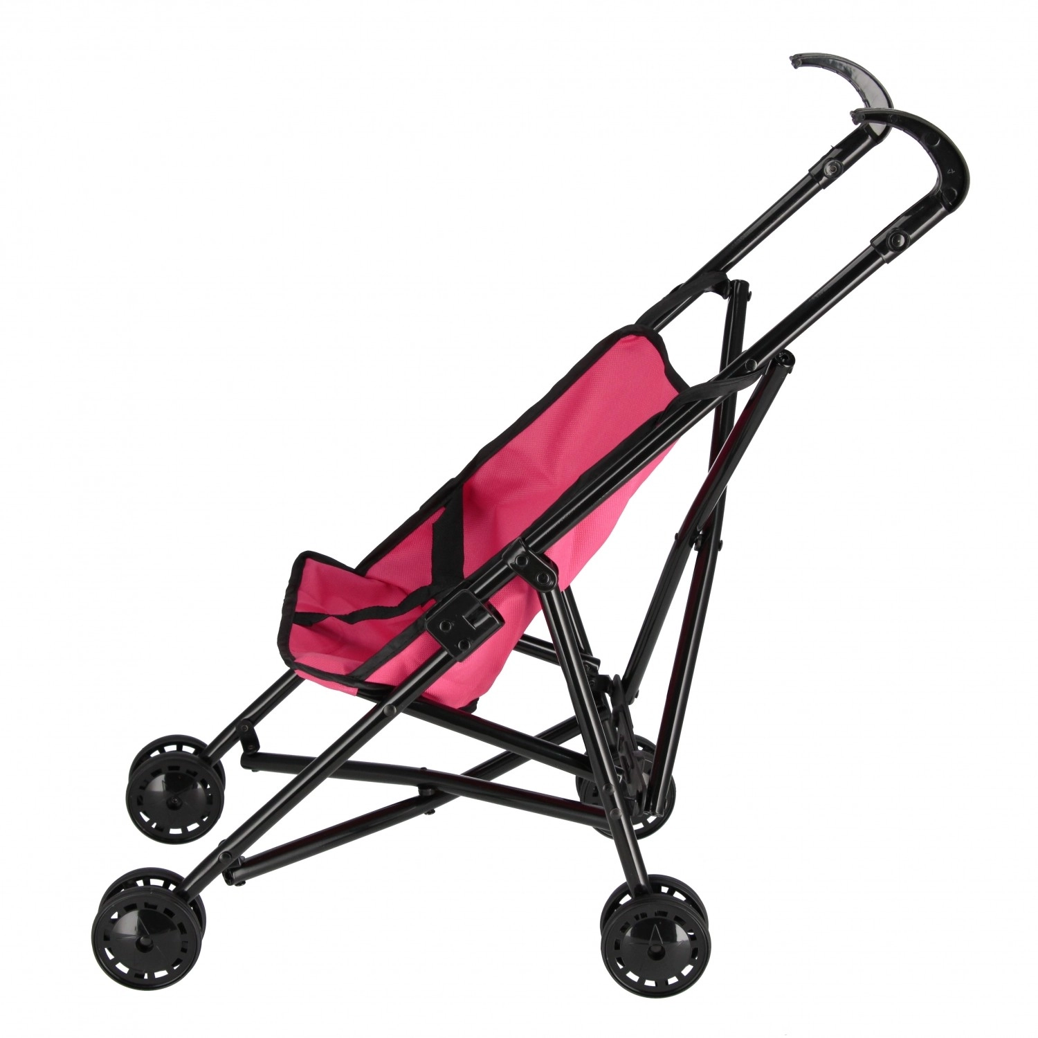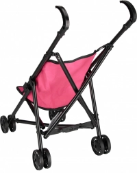 Denne metal-dukkevogn kombinerer en robust konstruktion med lav vægt, så den er let at skubbe og samtidig holder retningen godt. Det rosa tekstilsæde med sele holder dukken sikkert på plads, uanset om turen går gennem lejligheden eller udenfor.