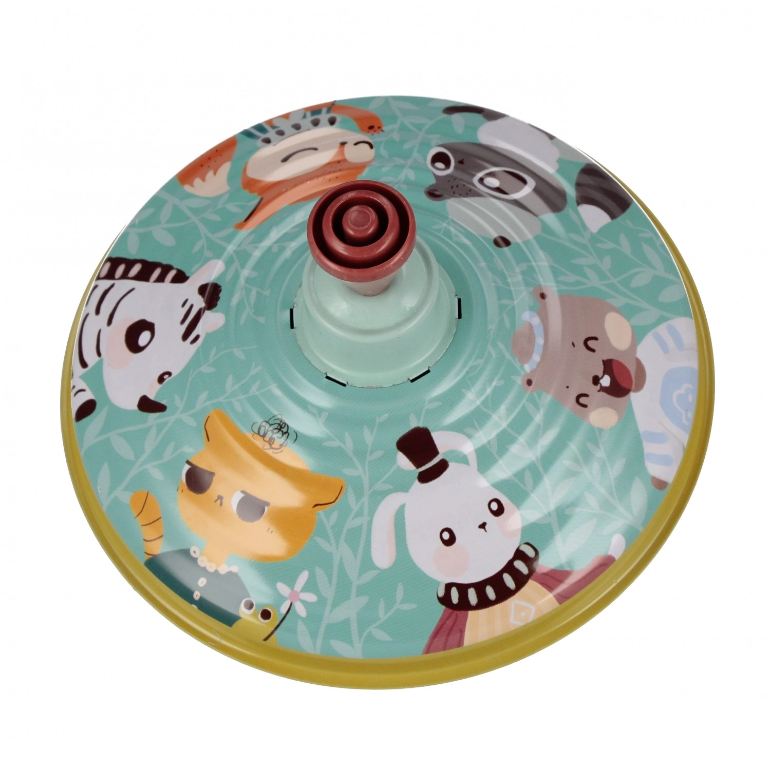 Sæt gang i glæden med en klassisk metal-snurretop med pumpe. Takket være den robuste metalkonstruktion og den afbalancerede spids drejer legetøjet glat og længe, mens de farverige motiver fanger børnenes opmærksomhed. Den enkle mekanisme – et tryk på det øverste stempel – understøtter naturlig udvikling af håndstyrke og hånd-øje-koordination.