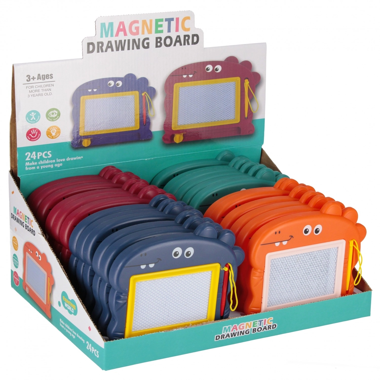 Oplev magien ved endeløs tegning uden rod. Den magnetiske tegnetavle til børn i form af en sød dinosaur tilbyder gentagen tegning og nem sletning med en smart skyder. Takket være de kompakte mål og den lette konstruktion er den perfekt til rejser, i bilen og på besøg.