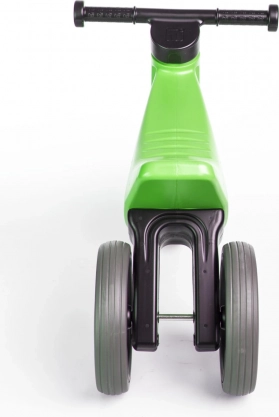 Sikkerheden sikres af begrænset styrevinkel, udvidede greb beskytter hænderne, og de brede hjul giver stabilitet. Den lette konstruktion (kun 1,9 kg) gør det nemt at bære og håndtere. Løbecyklen hjælper med at udvikle motorik, balance og koordination og motiverer børn til længere og sjovere gåture.