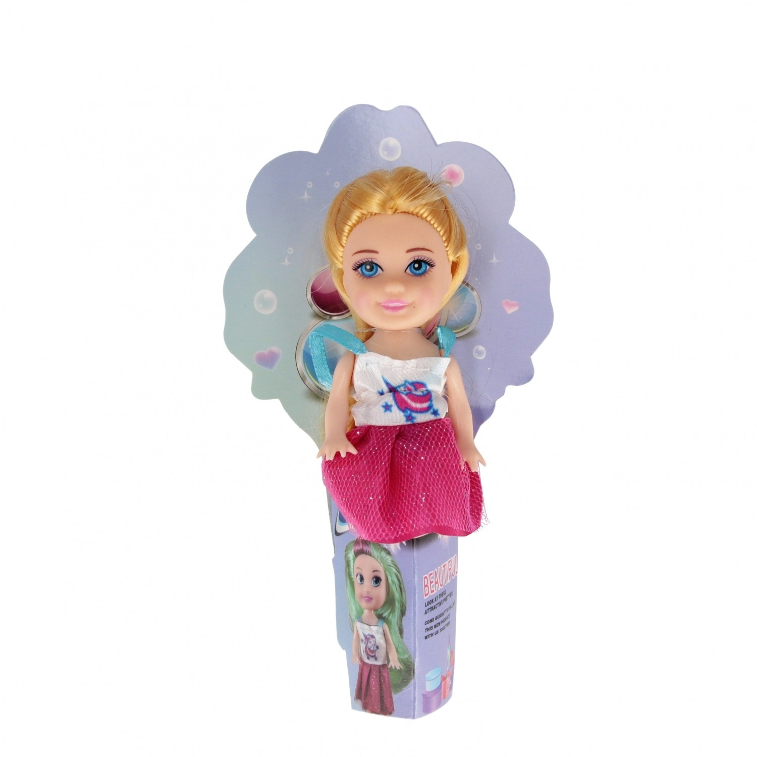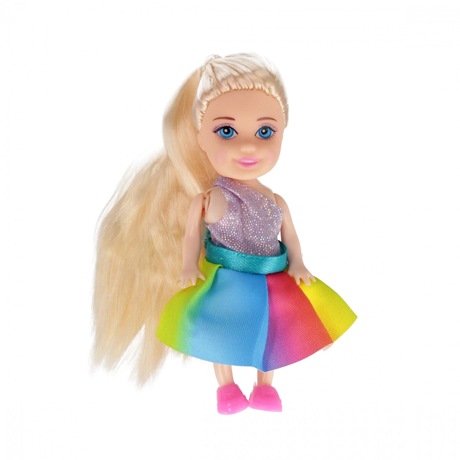 Mini-dukken Rainbow glæder små modeelskere og fantasifuld leg. Med sin højde på 10 cm passer den nemt i rygsæk eller lomme og er en perfekt rejsemakker. Hver dukke har unikt matchende kjole, sko og tilbehør, så hver udpakning er en lille overraskelse.