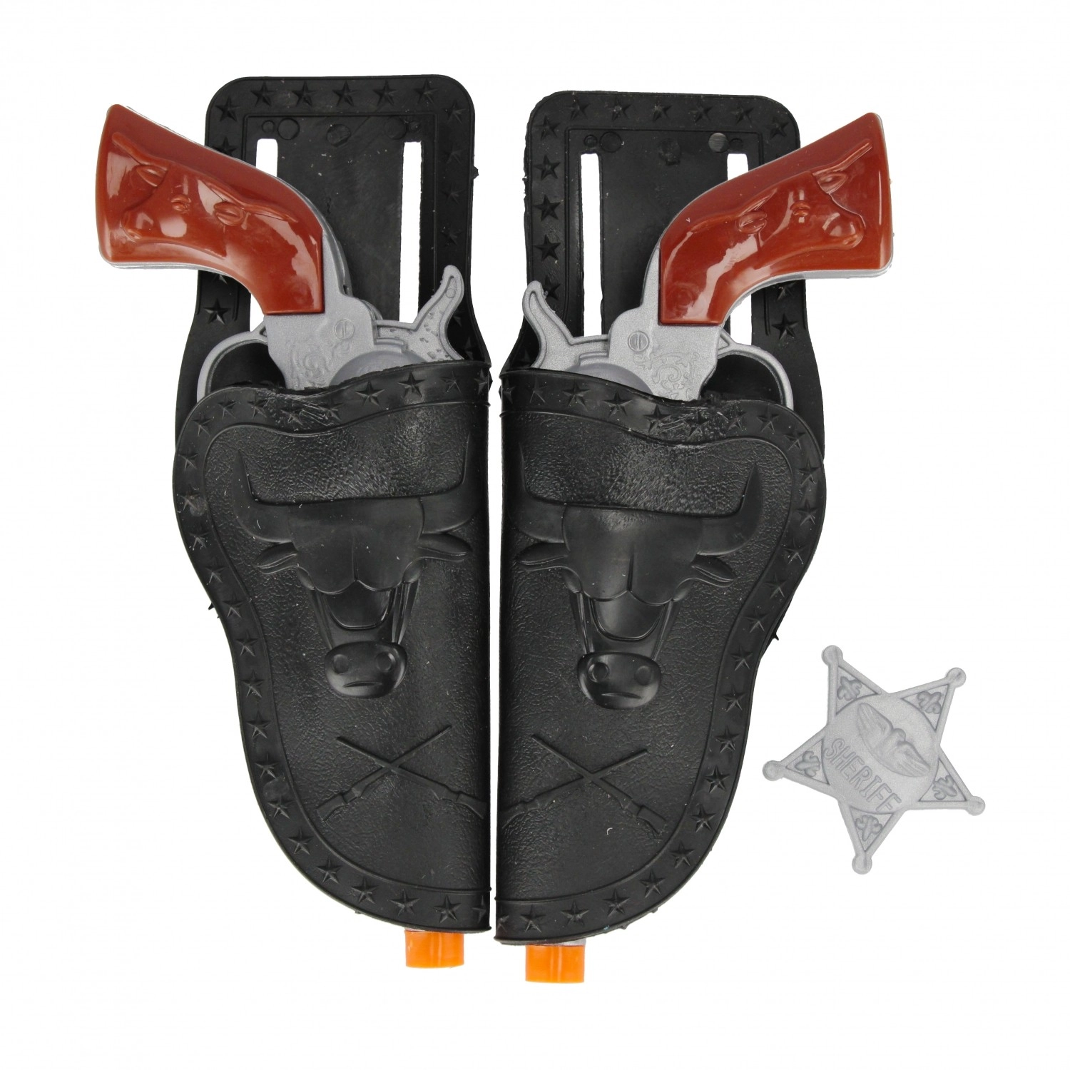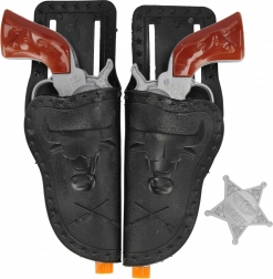 Sættet indeholder alt, hvad der er nødvendigt for en autentisk oplevelse – to pistoler, to bæltehylstre og en skinnende sherifstjerne. Takket være de lette materialer er tilbehøret nemt at håndtere og behageligt for børn at bære.