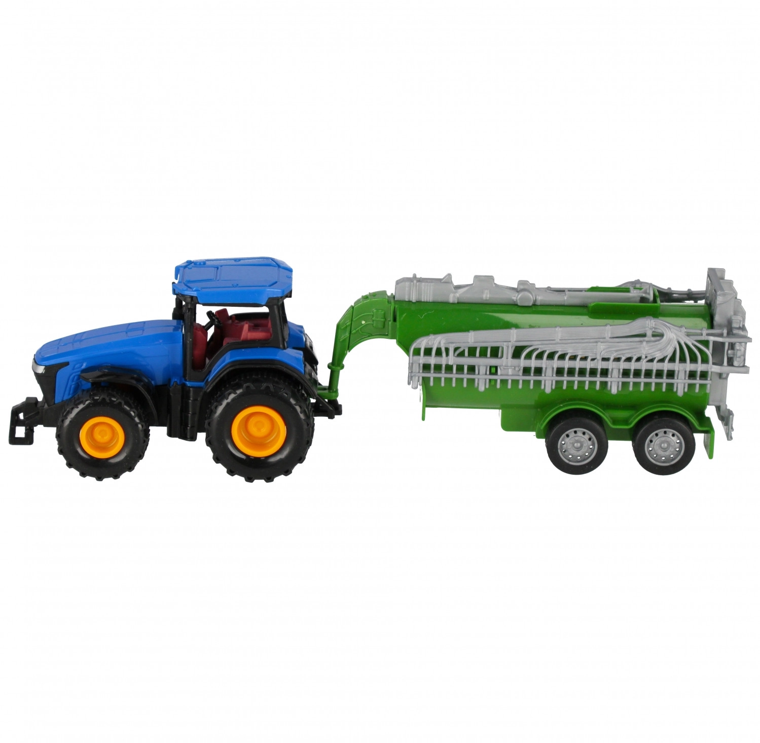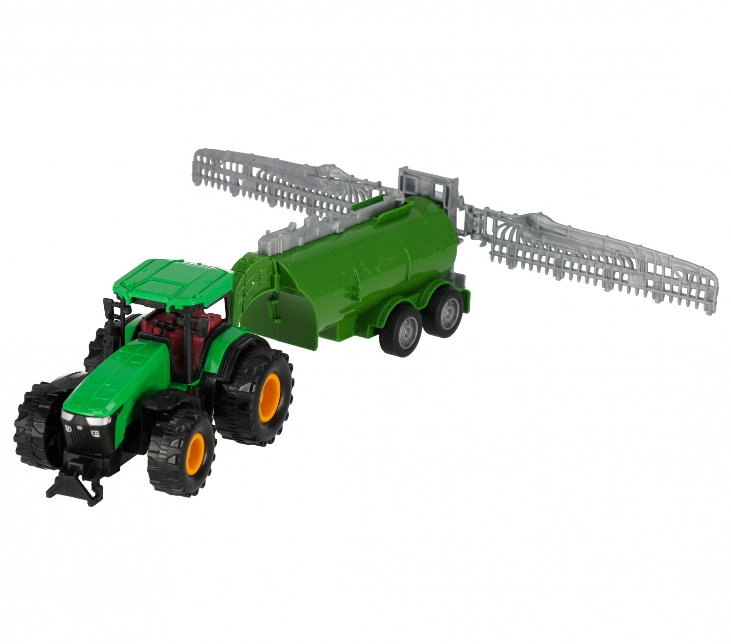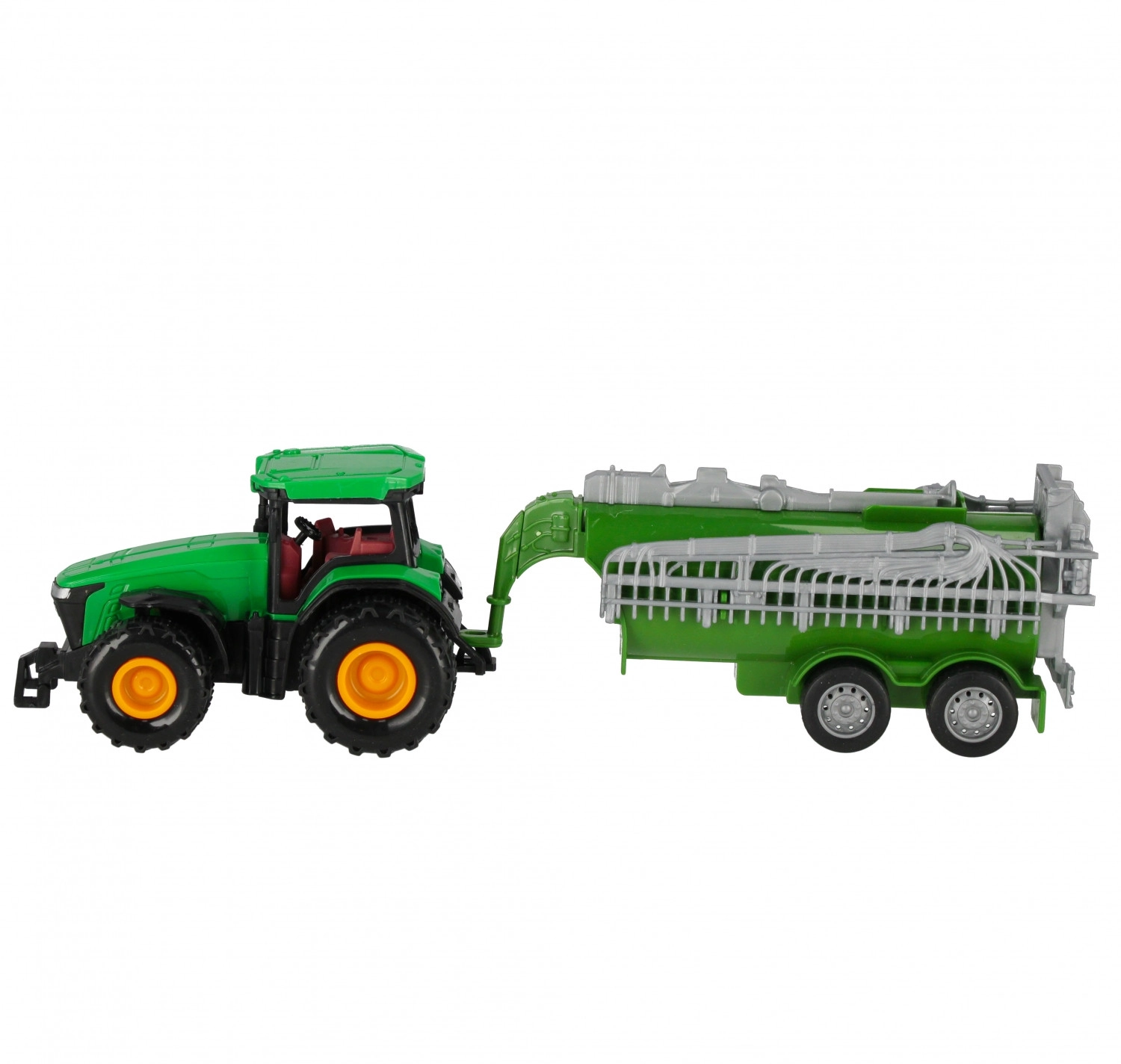 Denne detaljerede landbrugsmaskine med tanktrailer giver børn en autentisk bondegårdsleg. Takket være pull-back-funktionen er det nok at trække den tilbage og slippe – traktoren suser afsted og understøtter dynamisk leg. Bevægelige dele som udklappelige eller vipbare elementer på traileren og realistiske kabinedetaljer inviterer til udforskning og udvikler motorik og fantasi.