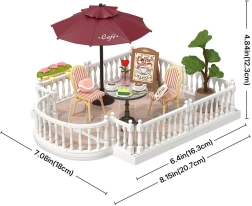 Skab dit drømmende miniaturhjørne med Rolife Super Creator udvidelsessættet. Denne detaljerede terrasse/ café tilføjer din dukkehusmodel en hyggelig altan med siddepladser, dekorationer og tilbehør for en realistisk scene. Nemt at montere, stilfuldt cafédesign og rigt tilbehør forvandler ethvert miniaturmiljø til et indbydende sted til afslapning.