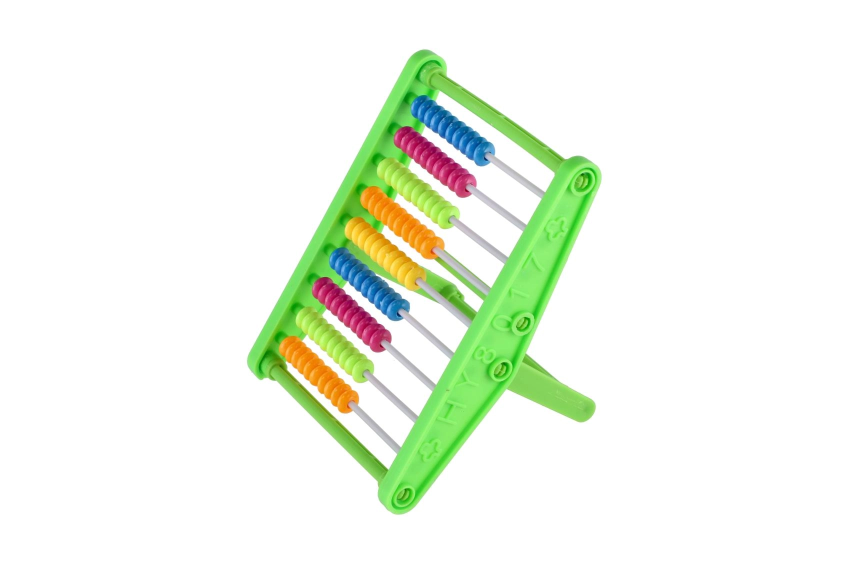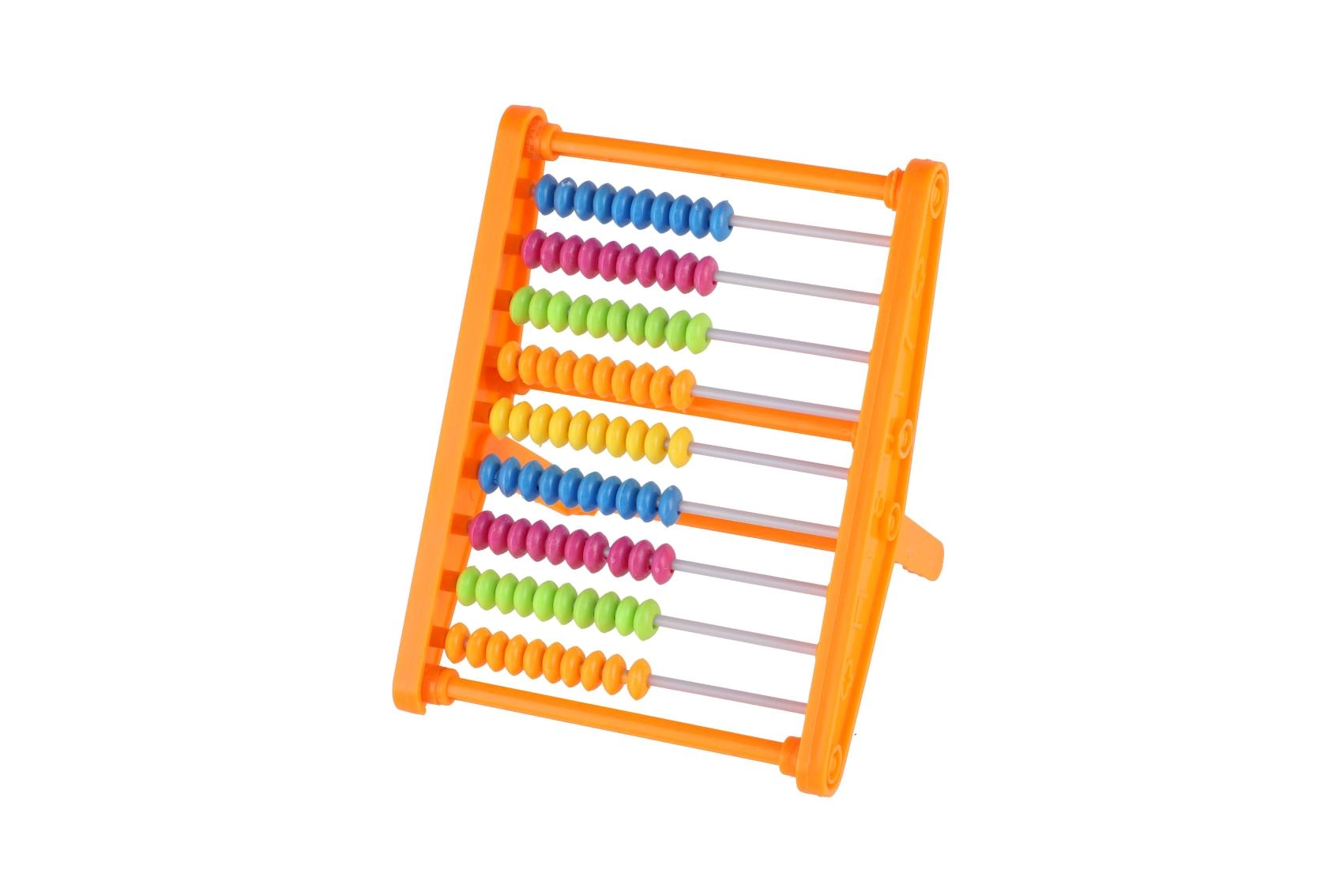 Dette kompakte regnebræt har 9 rækker med 10 kugler og tilbyder tydelig farveopdeling for lettere orientering under optælling. Takket være den stabile stander og den behagelige hældning arbejder børn komfortabelt ved både skolebord og hjemme.