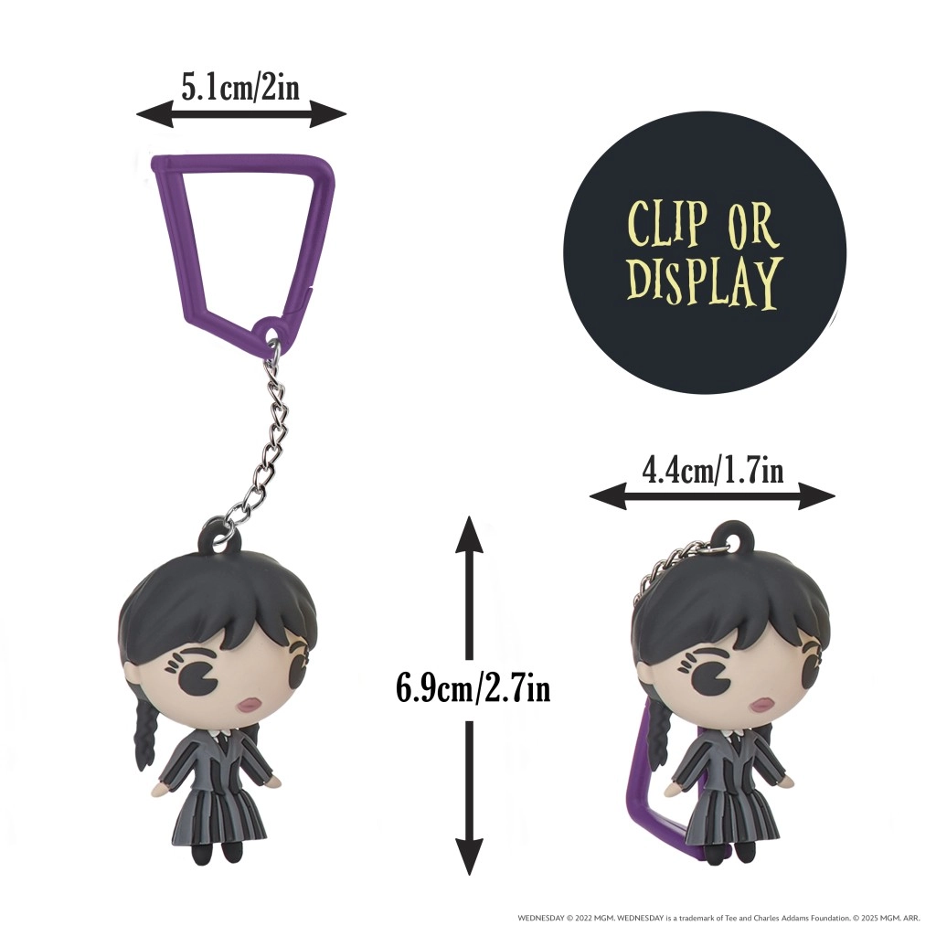 Disse stilfulde clips i form af figurer fra serien WEDNESDAY bringer en dosis mørk humor og originalitet ind i hverdagen. De er lette, nemme at sætte fast og giver dine ting et personligt præg.