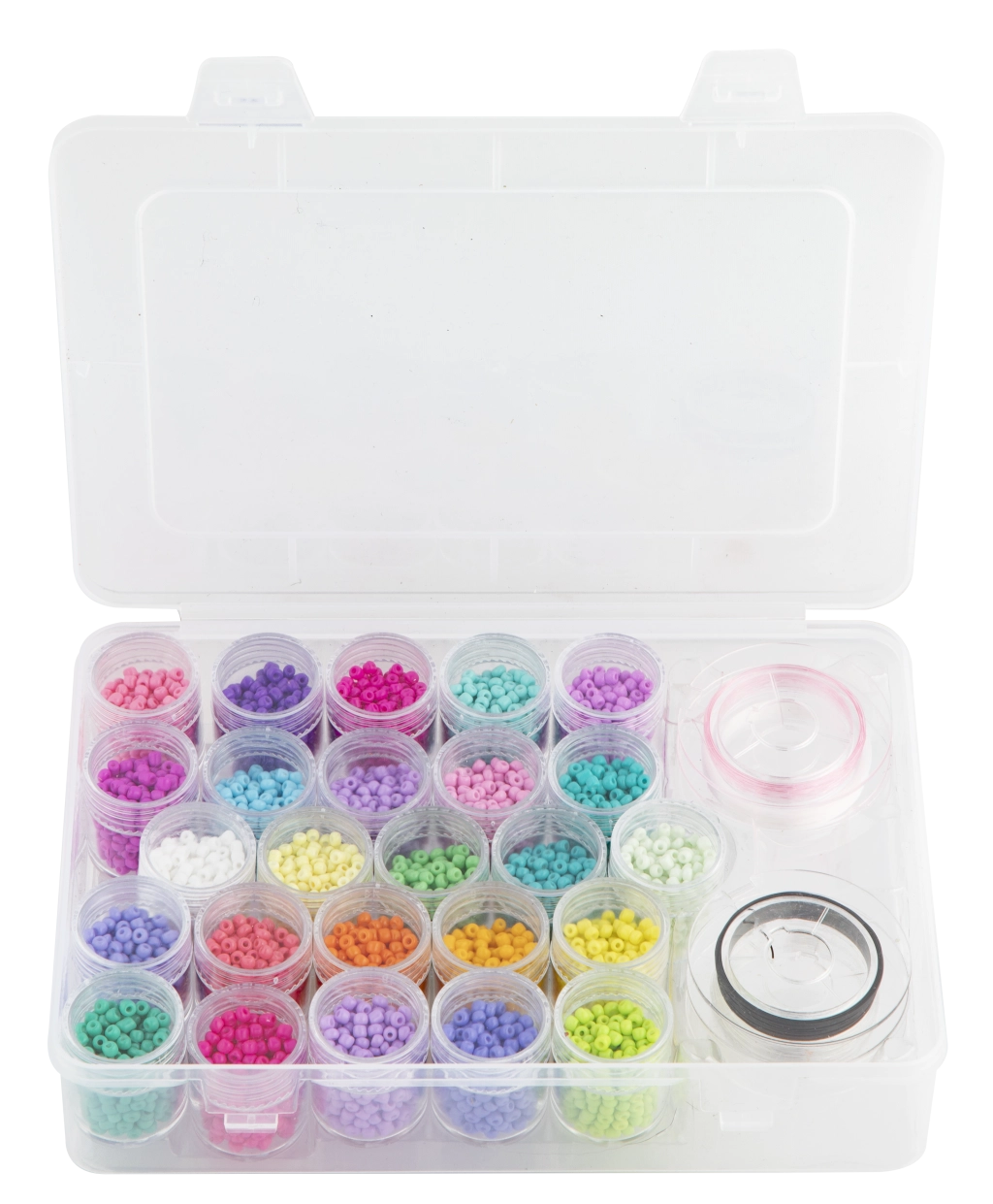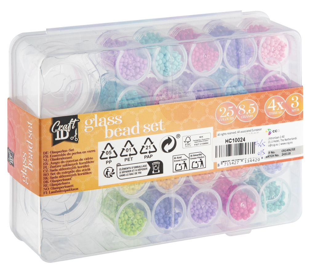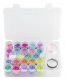 Dette store sæt glasperler bringer et rigt udvalg af 25 farver til dine kreative projekter. Takket være den transparente organizer med rum har du alle nuancer overskueligt lige ved hånden og kan hurtigt kombinere farver til unikke designs.