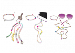 Lav en nøglering, et mobilvedhæng, et armbånd eller en brillesnor, og match farver, bogstaver og charm-vedhæng til et unikt design.