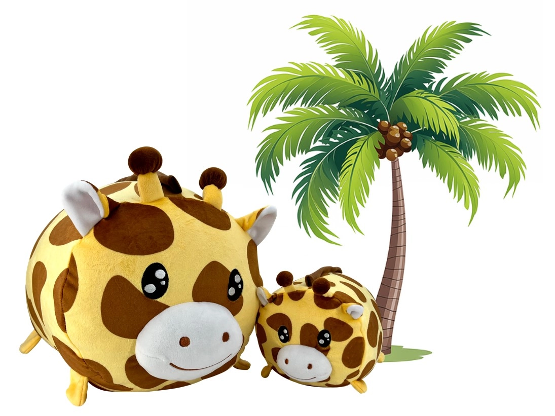 Sættet med to broderede plysgiraffer giver bløde kram og en nuttet dekoration til børneværelset. Den runde form, den blide plys og sikre syede detaljer sikrer behagelig hygge selv for de allermindste, mens større børn vil sætte pris på den større giraf som pude i bilen eller på rejser.