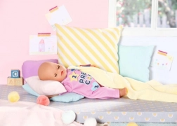 Sød lyserød heldragt med hætte til BABY born-dukker i størrelse 36 cm, der kombinerer søvnkomfort og legeglæde. Easy fit-stilen gør omklædning nem, og den gode kvalitet sikrer langvarig leg fuld af fantasi og opdagelse af påsyede motiver.