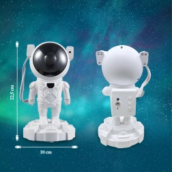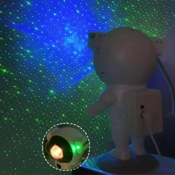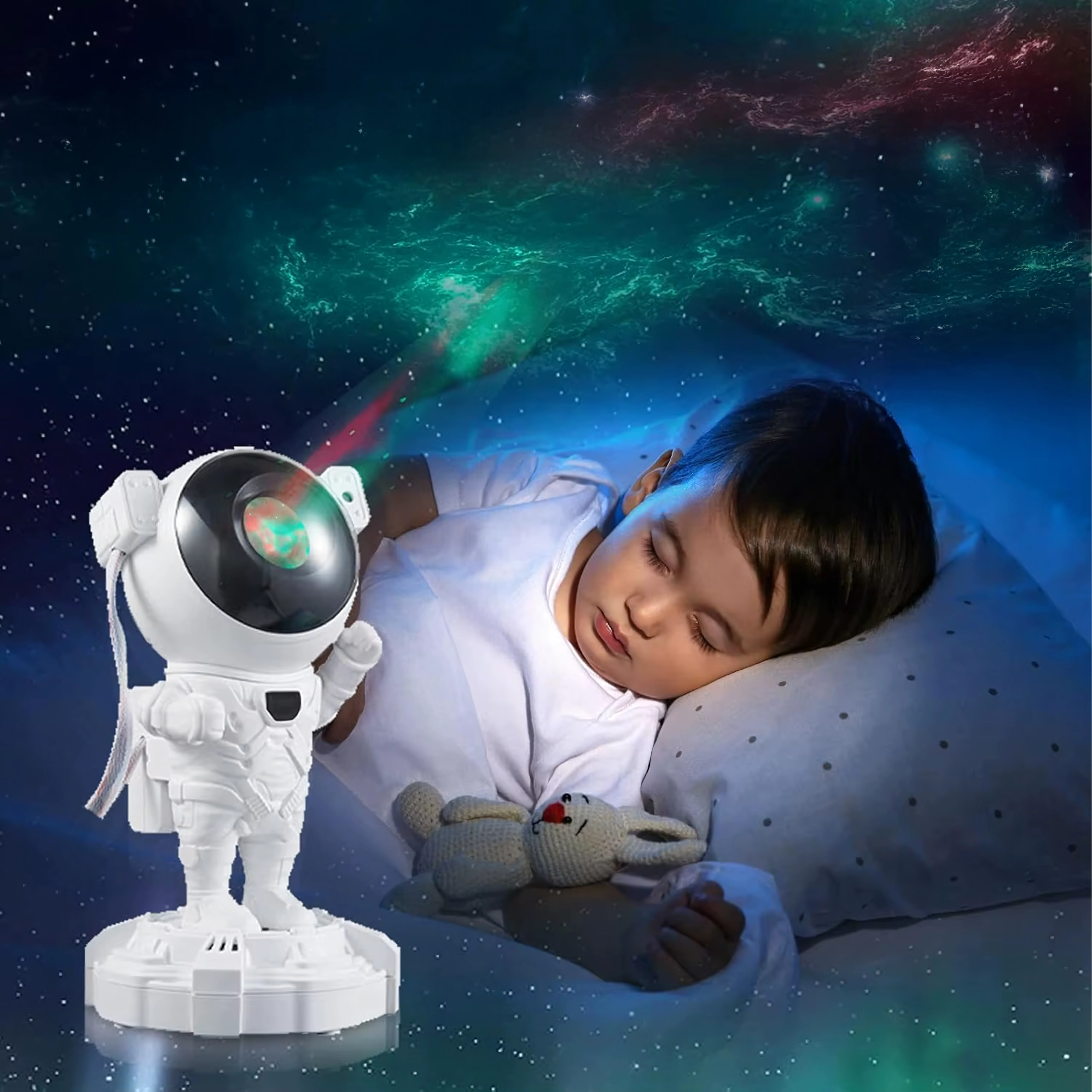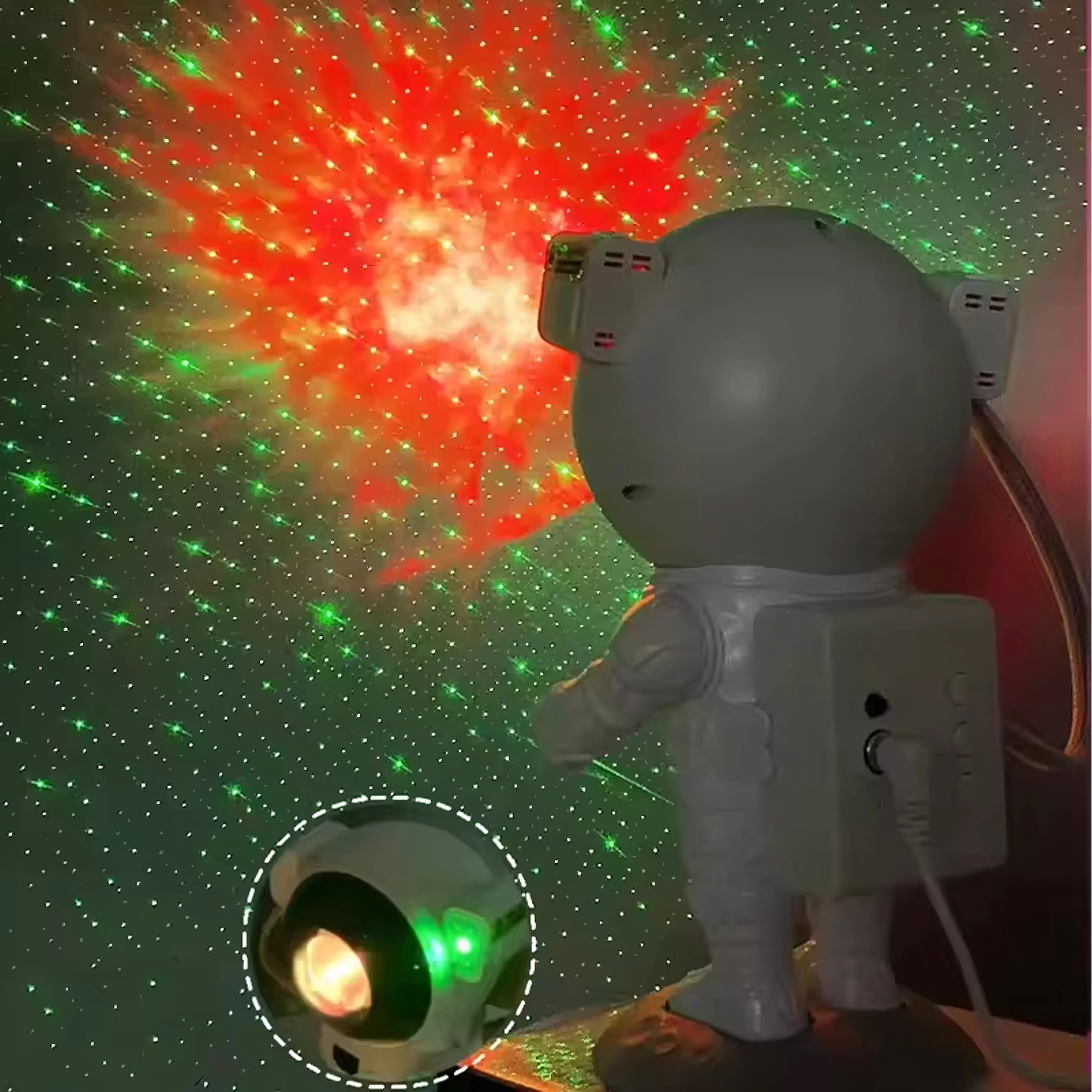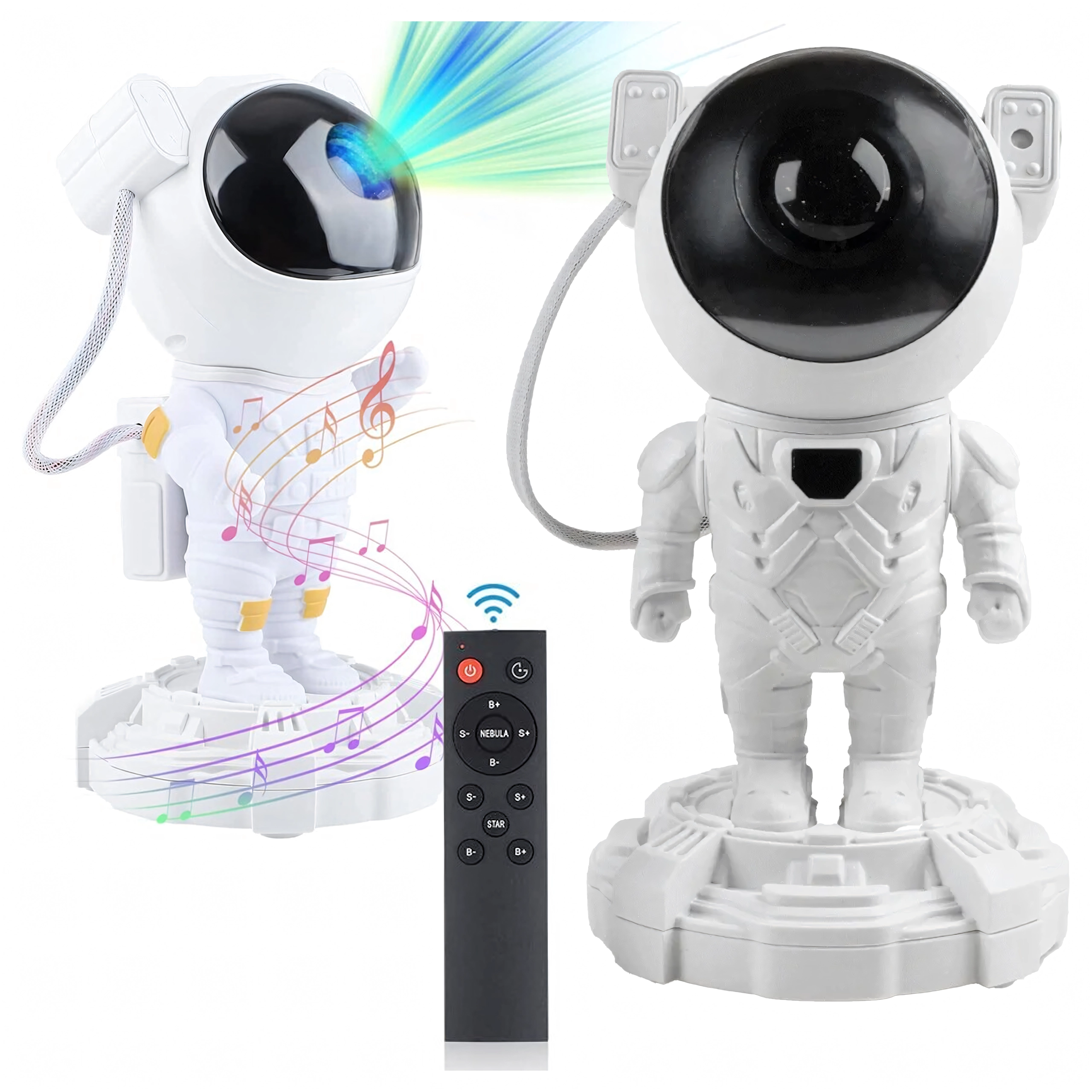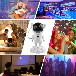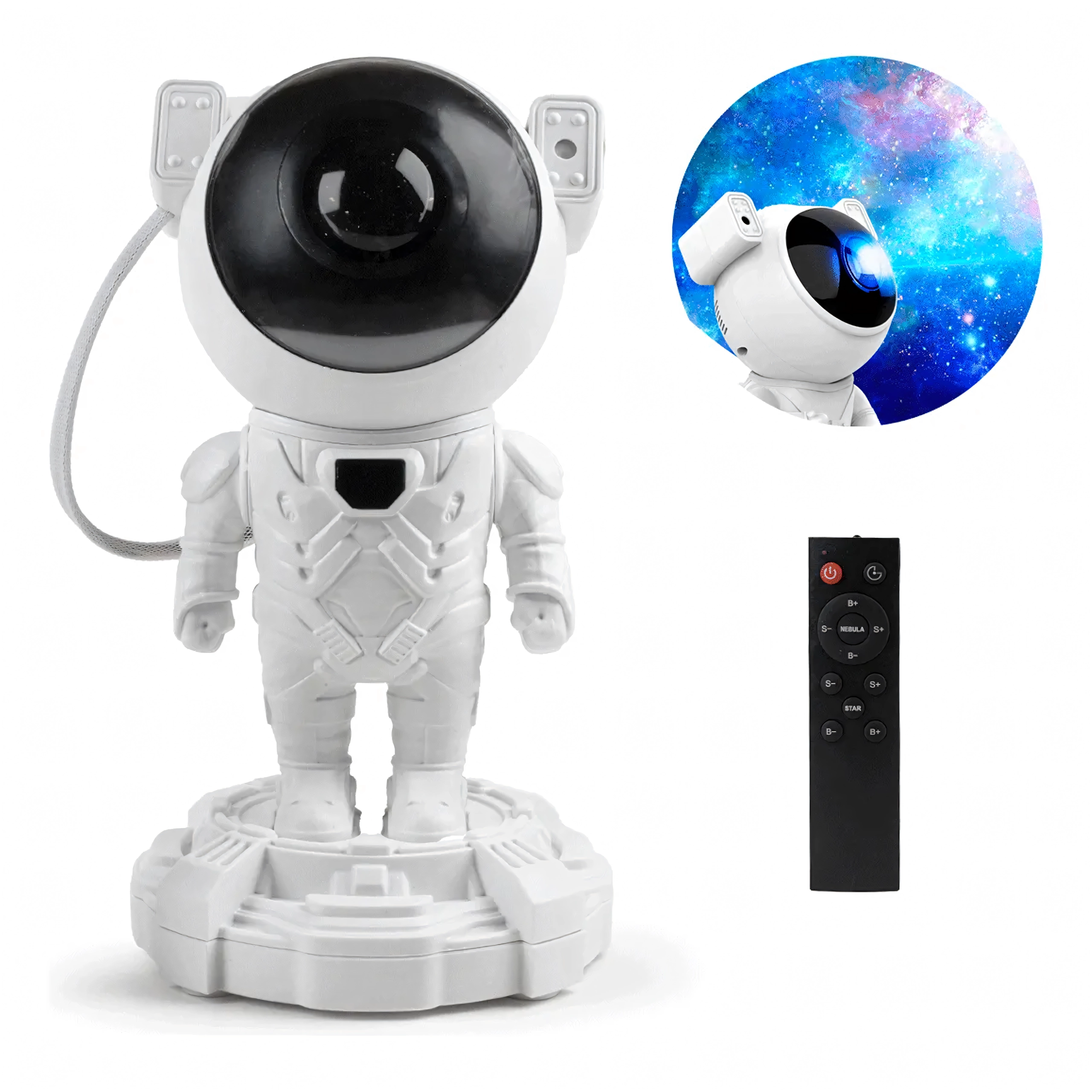 Skab et roligt miljø for både søvn og leg. Designet som en lille astronaut med blankt visir projicerer farvede tåger og stjerner på loft og vægge, hvilket skaber en hyggelig atmosfære til afslapning, læsning og aftenrutiner. Med fjernbetjeningen skifter du nemt tilstande, ændrer farver og justerer lysstyrken.