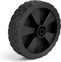 Det pålidelige reservehjul med robust slidbane giver sikkert greb og jævn bevægelse på forskellige underlag – fra fliser til havegange. Takket være den lette, men stærke konstruktion med egernav monteres hjulet nemt på akslen og giver stabilitet ved transport af last.
