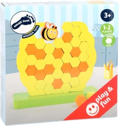 Det motoriske balancelegetøj bikube Small Foot gør hver dag til en sjov udfordring. Bien sidder på den øverste kant af kuben, og spillerne skiftes til at trække træceller ud, så balancen bevares. Den, der kan holde bien i kuben længst, vinder!