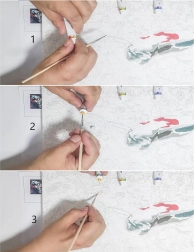 Fine pensler og akrylfarver af høj kvalitet gør det muligt at udfylde selv små felter og opnå et professionelt resultat.