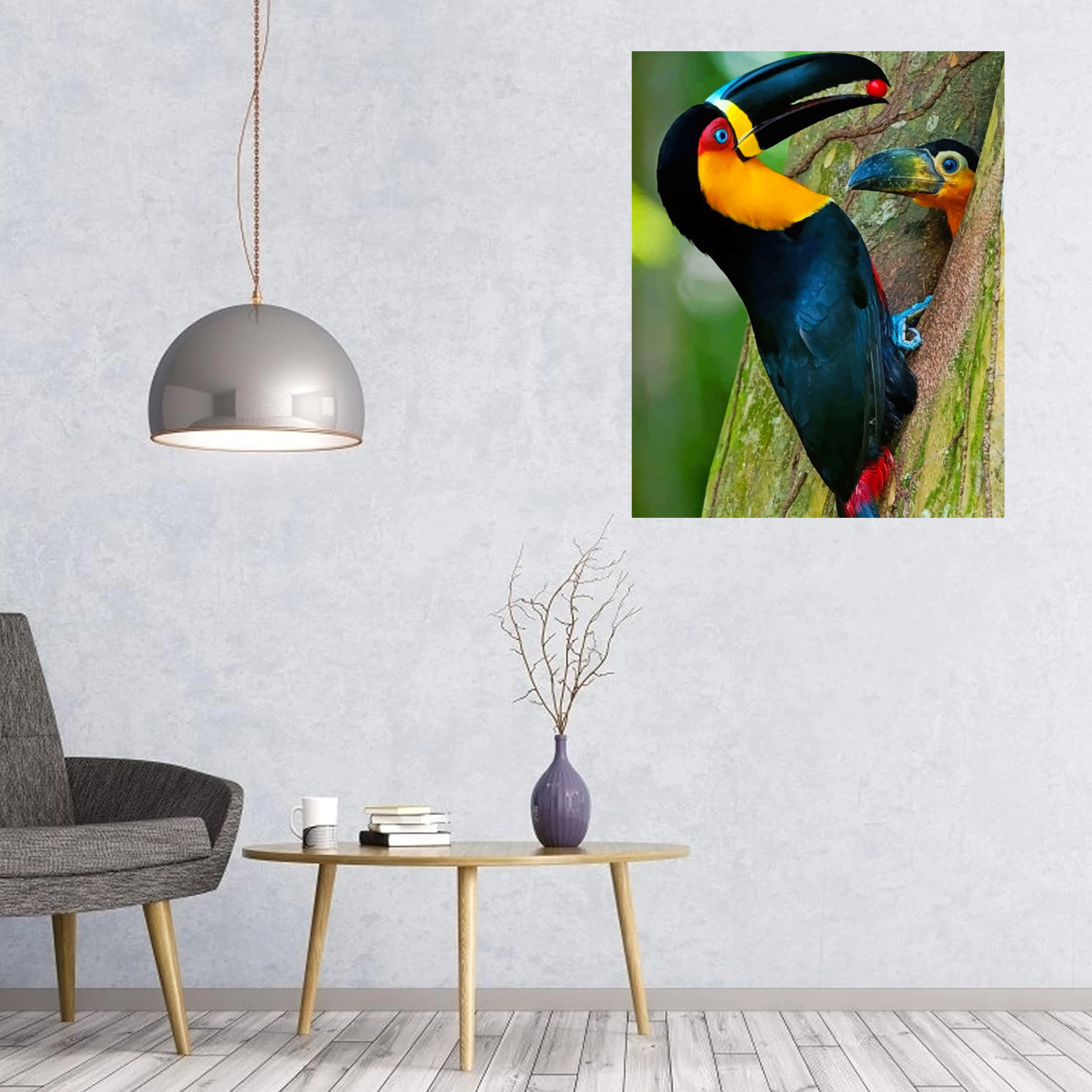 Det eksotiske tukanmotiv med kraftige farver bliver et markant element i dit hjem og bringer en tropisk stemning til hvert rum.