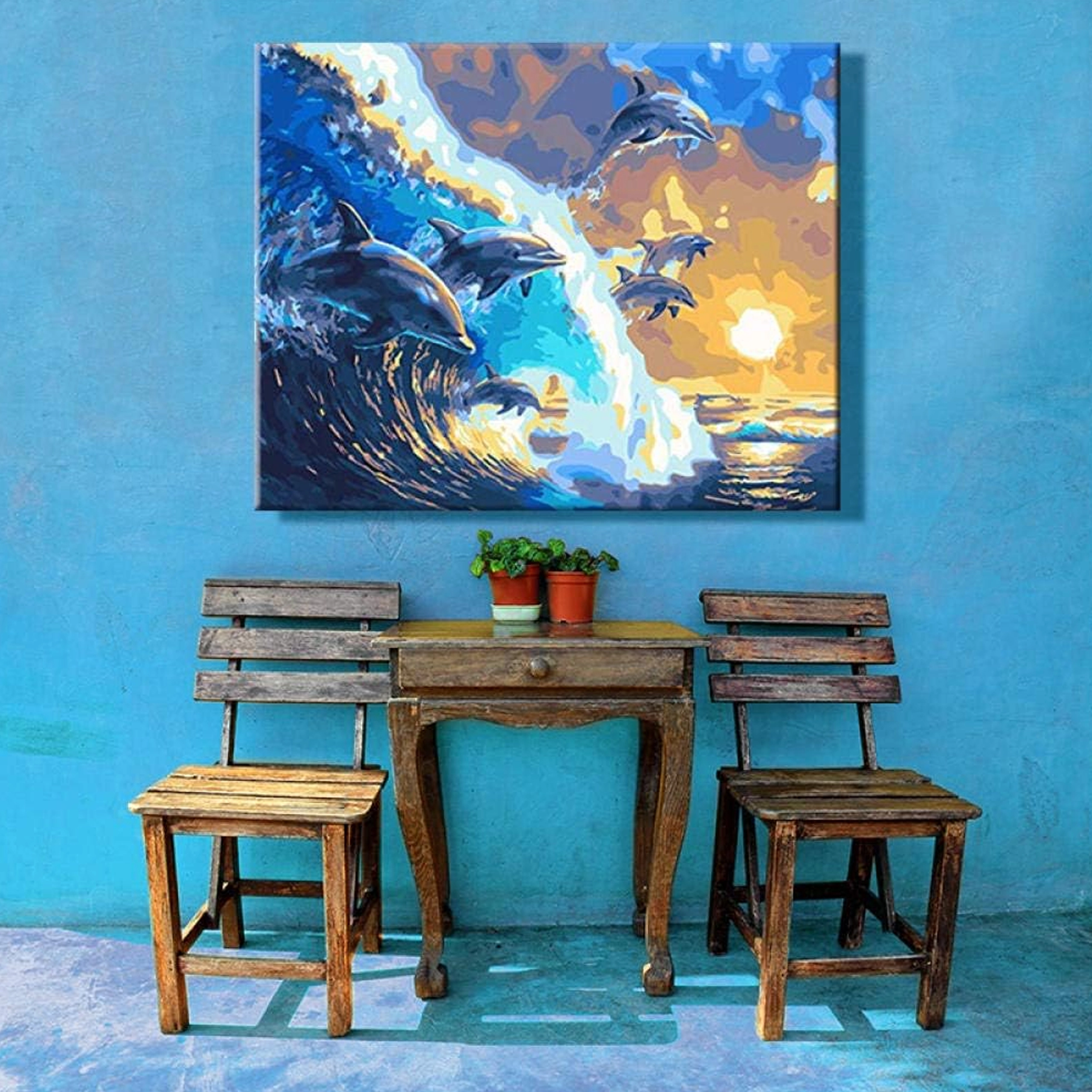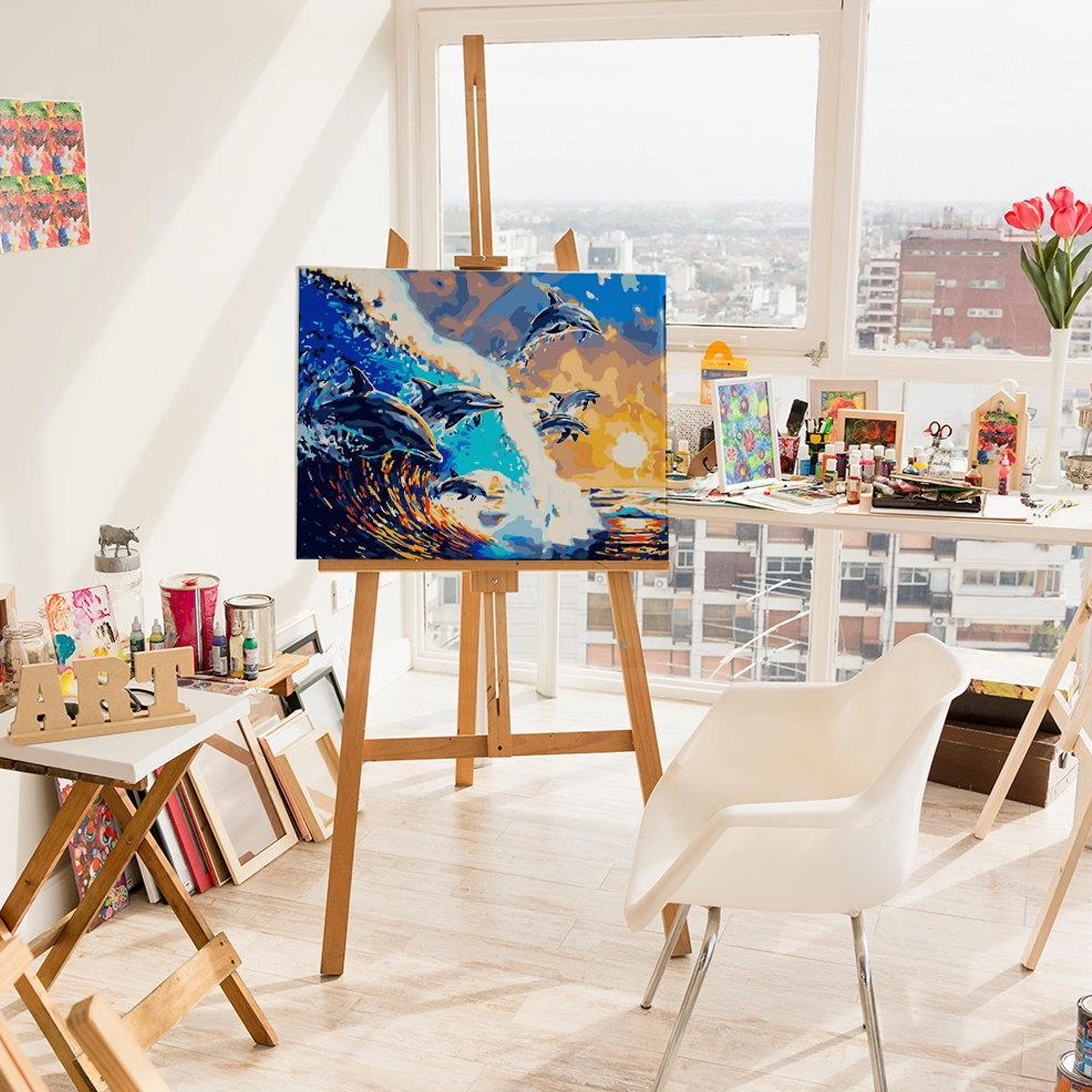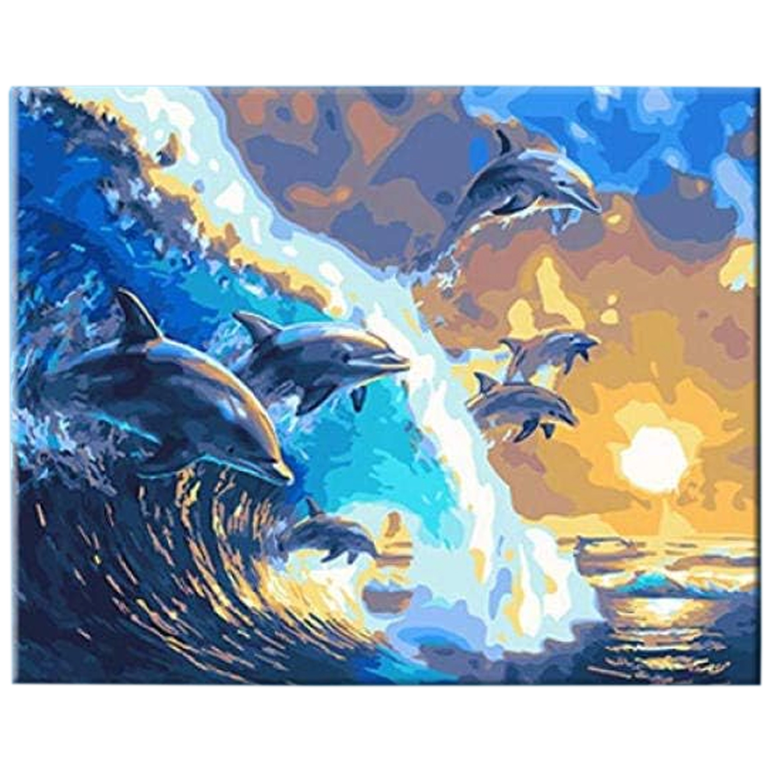 Dette kreative sæt gør det muligt for dig at male dit eget billede uden tidligere erfaring. Lærredet har fortrykte, nummererede felter, og i pakken finder du matchende akrylfarver og pensler. Hvert tal hører til en bestemt farve – du udfylder blot og ser, hvordan der foran dig opstår en levende havscene med delfiner.