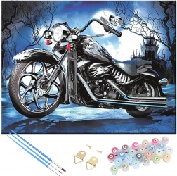 Dette sæt til maling efter tal giver en nem måde at skabe dit eget kunstværk på. Lærredet har fortrykte konturer med tal, som svarer til de enkelte farver i pakken. Udfyld blot felterne med den rigtige nuance, og motivet MOTOR GHOST RIDER vokser gradvist frem.