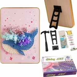 Skab din egen vægkunst uden maling – du skal blot bruge søm, tråde og en skabelon. Sættet guider dig gennem en enkel proces: hamr sømmene i underlaget efter omridset, og flet derefter med tråden. Resultatet er et rumligt billede med et originalt design, der vækker opmærksomhed i enhver indretning.