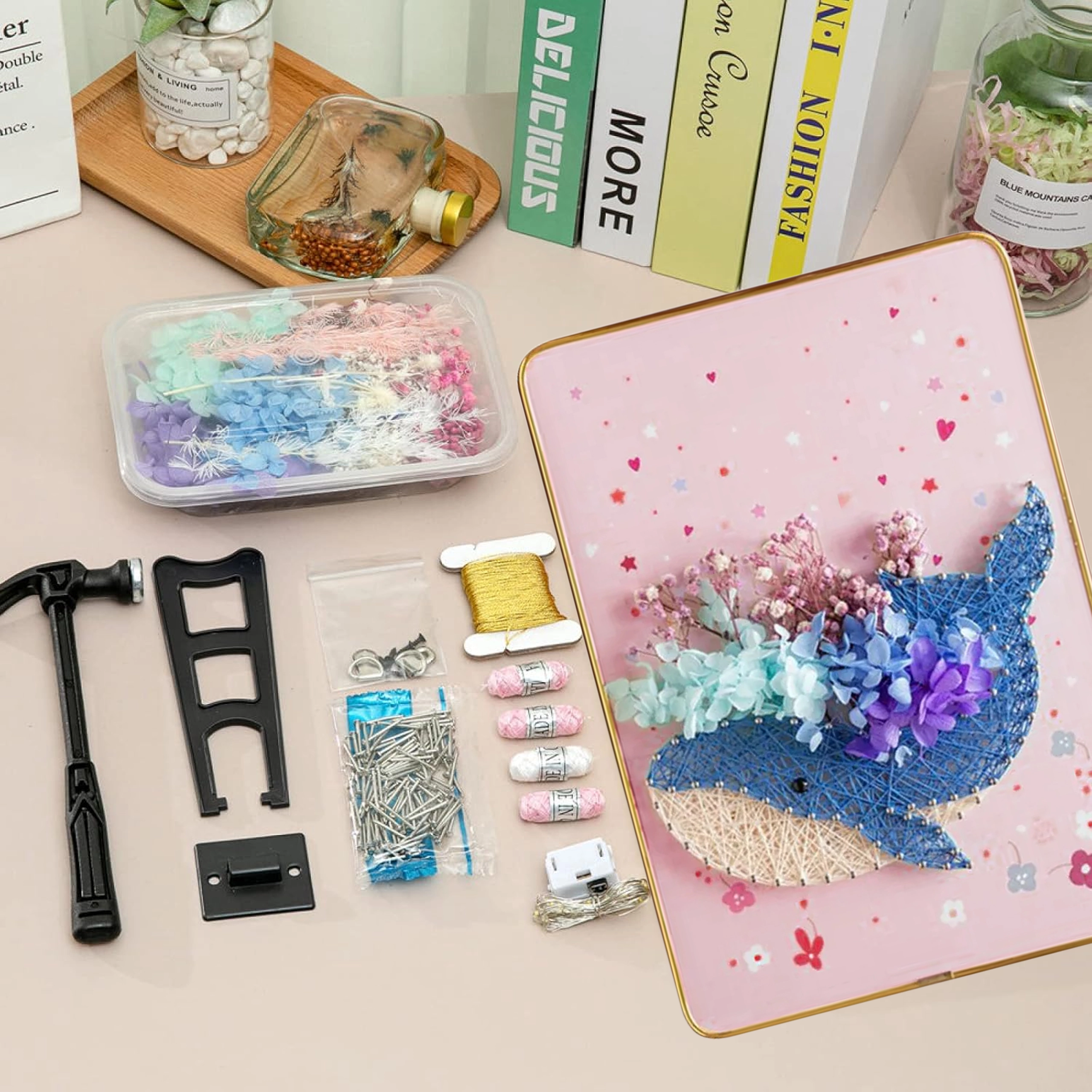 Det komplette DIY-sæt indeholder bagplade i ramme, søm, tråde og småt værktøj. Begynd at skabe med det samme efter udpakning – uden at skulle skaffe ekstra redskaber.