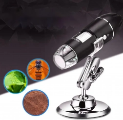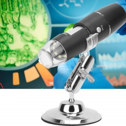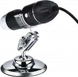 Opdag detaljer, som det blotte øje overser. Dette digitale USB-mikroskop med 2 MP sensor giver et skarpt realtidsbillede og afslører med forstørrelse op til 1600× strukturer i elektronik, mineraler, tekstiler, planter og insekter. Otte højtydende LED med justerbar intensitet sørger for den rette belysning i enhver scene.