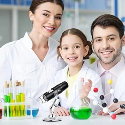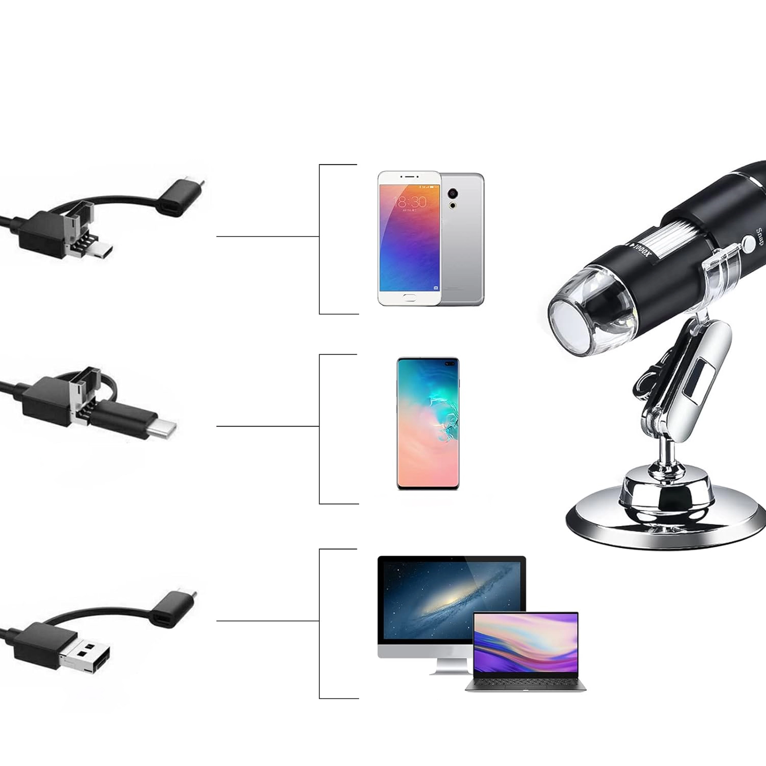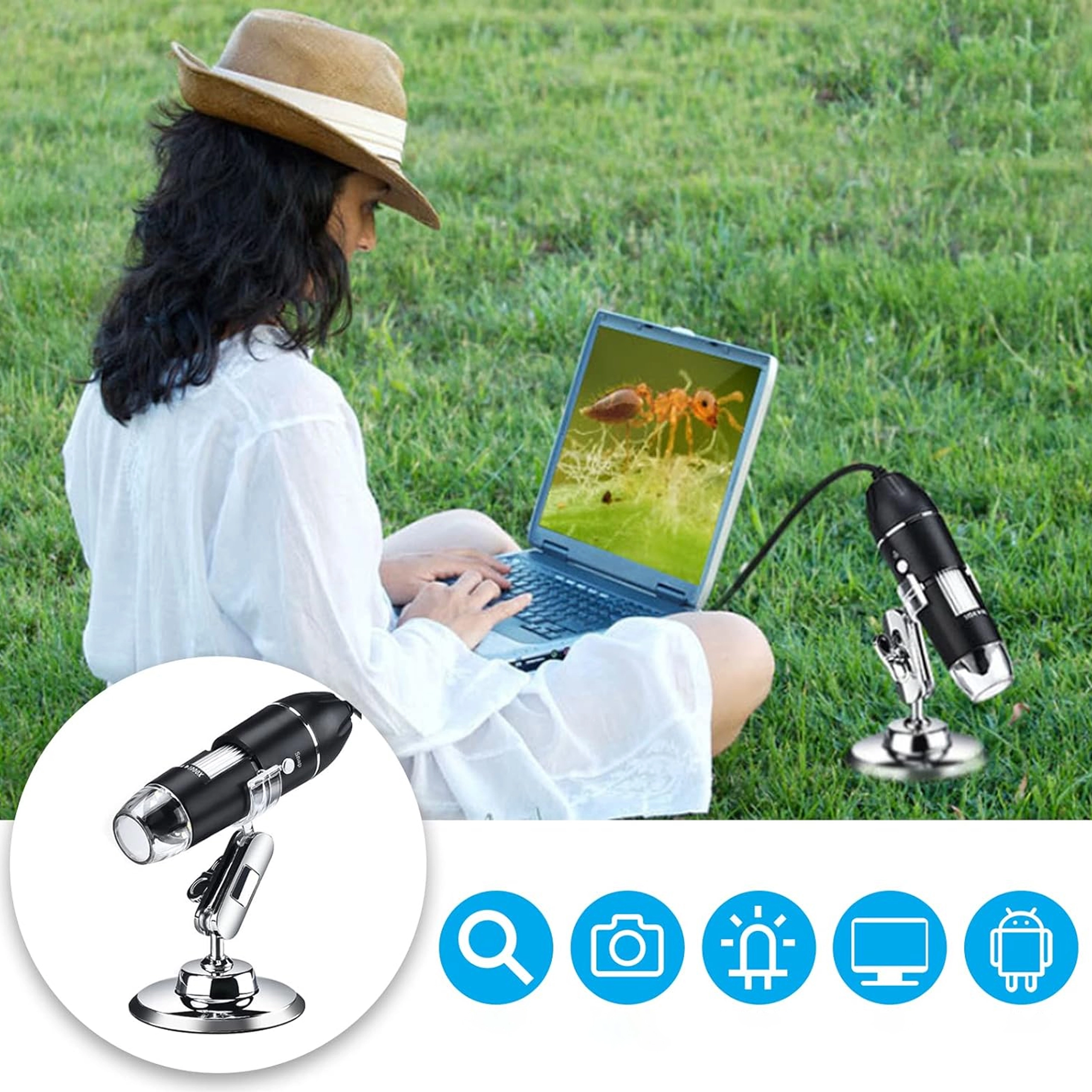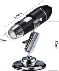 Betjeningen er intuitiv – præcis fokusering sker via det drejelige hjul på mikroskopets krop, og stativet giver en stabil base til skarpe fotos og videoer. Via USB får du både strøm og dataforbindelse, så du hurtigt kan tage fotos og optagelser til dokumentation eller undervisning.