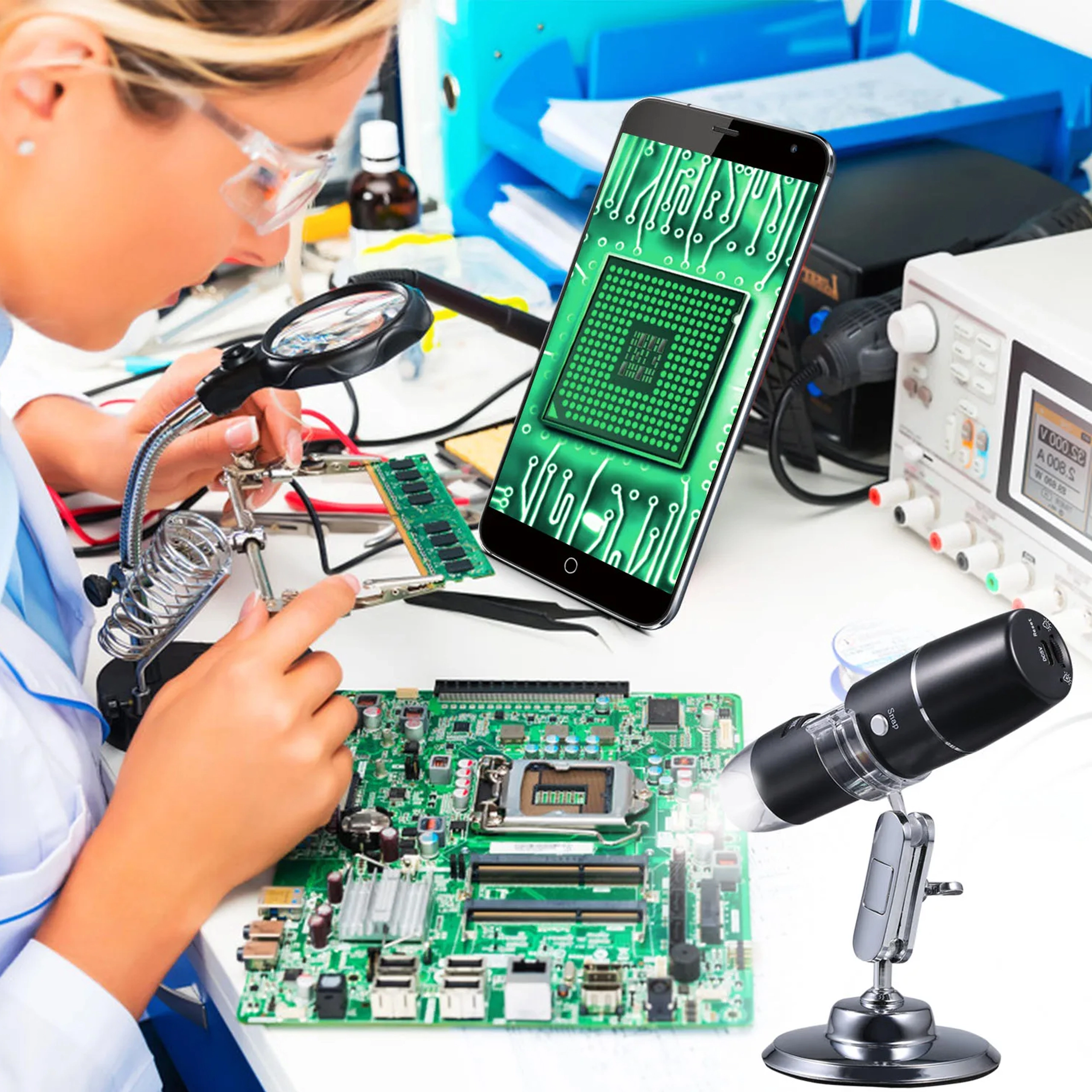 Udforsk mikrodetailler med høj forstørrelse og finjustér skarpheden med det drejelige fokusring. Ideelt til elektronik, tekstiler og biologiske prøver.