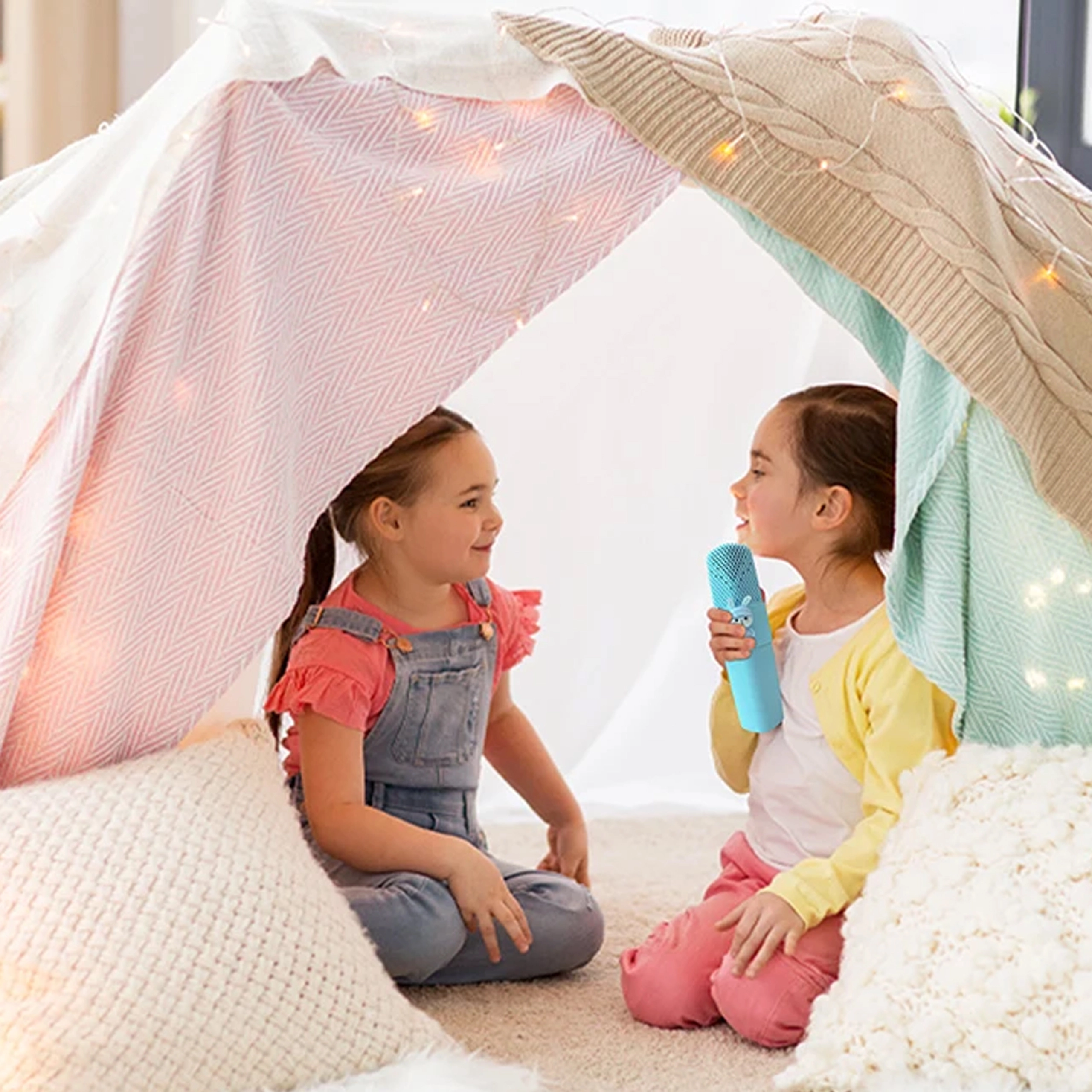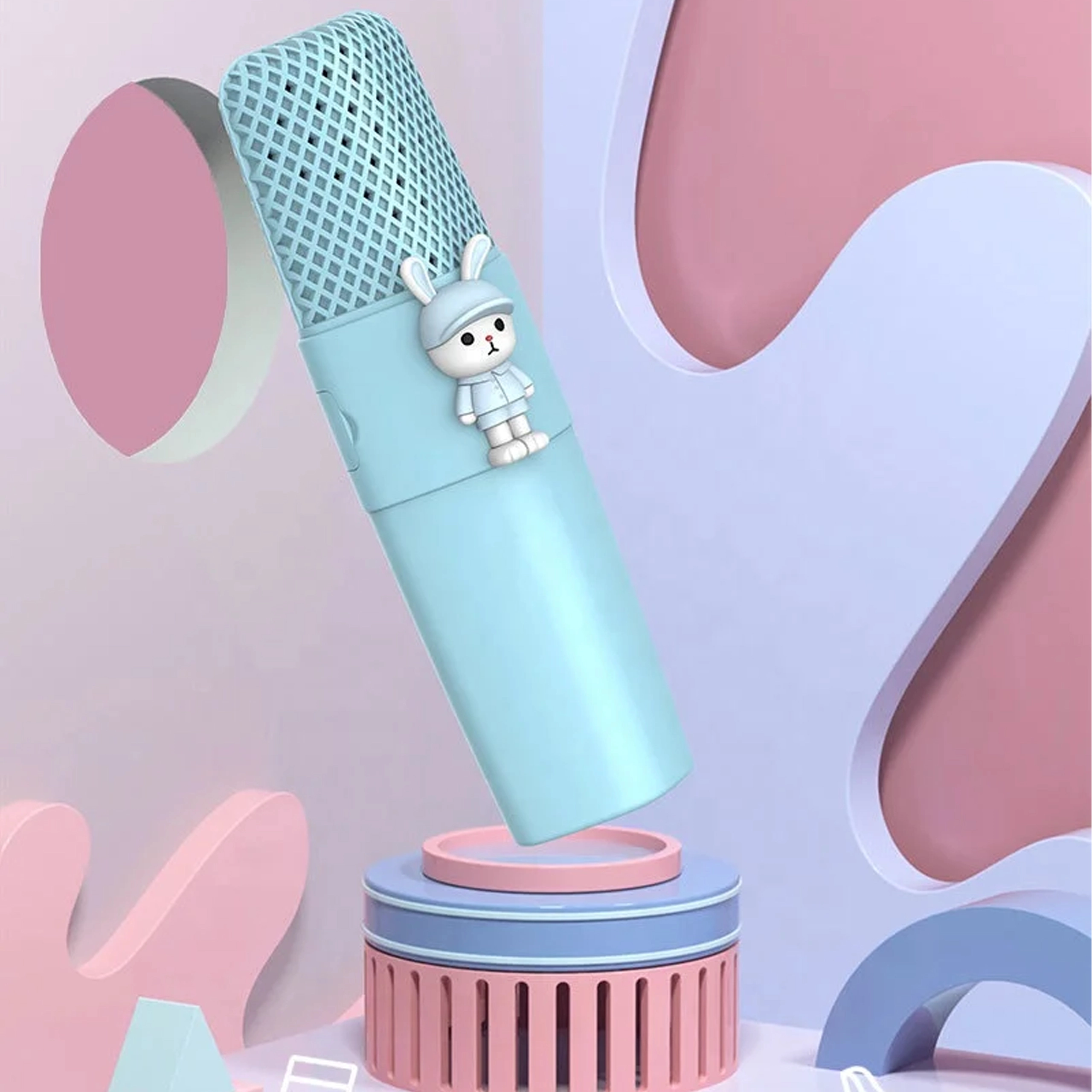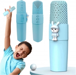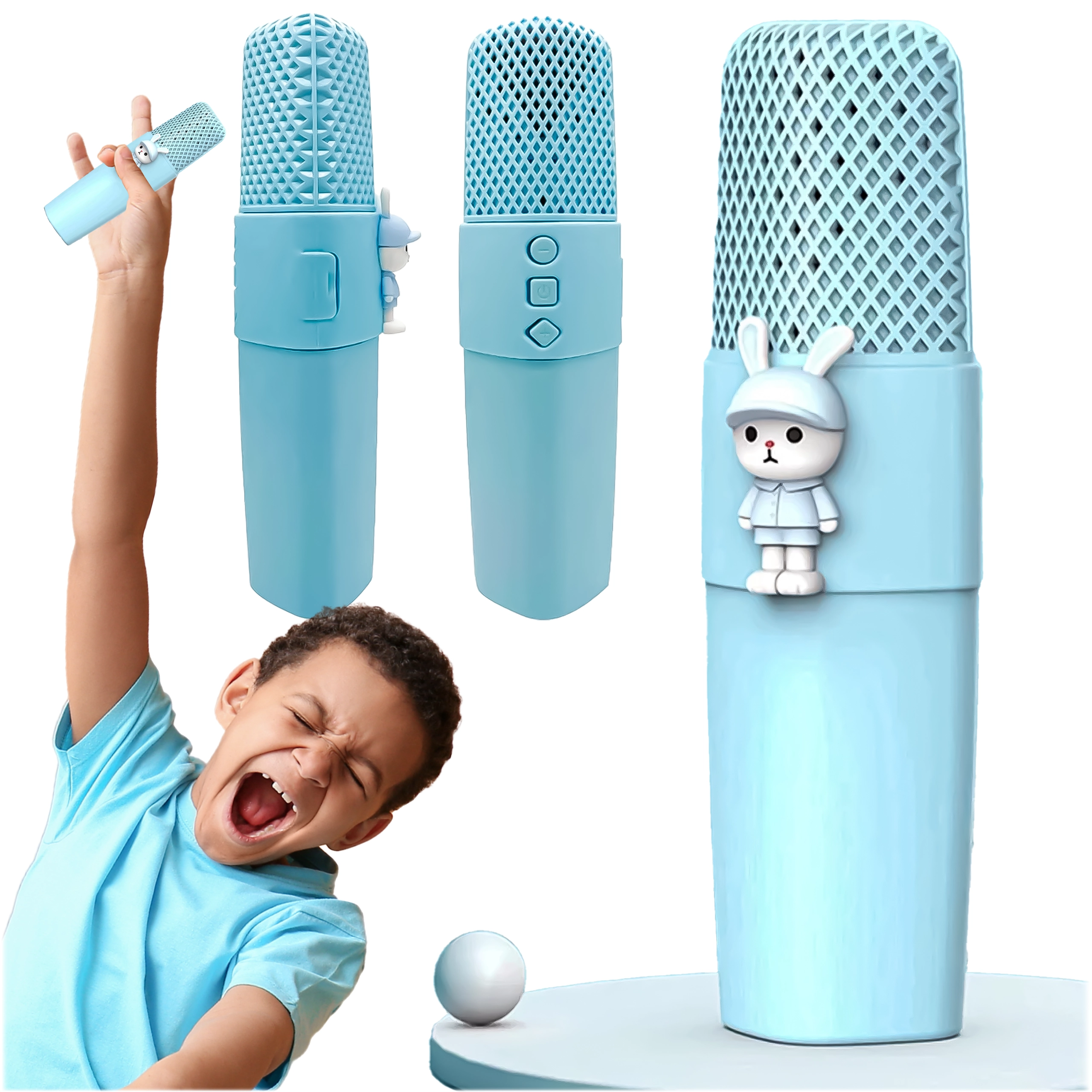 Det søde design med kaninmotiv, den sikre udførelse og den enkle betjening gør denne mikrofon til et perfekt valg for små sangere. Takket være Bluetooth parres den nemt med smartphone eller tablet og giver dig mulighed for bekvemt at afspille, pause, springe numre over og justere lydstyrken uden at række ud efter enheden.