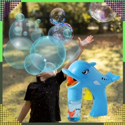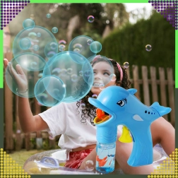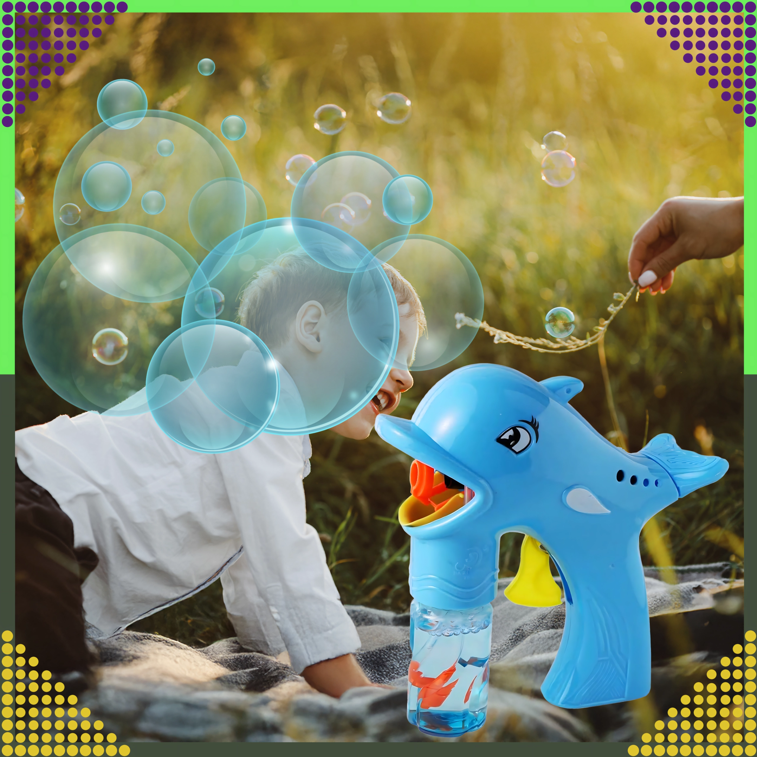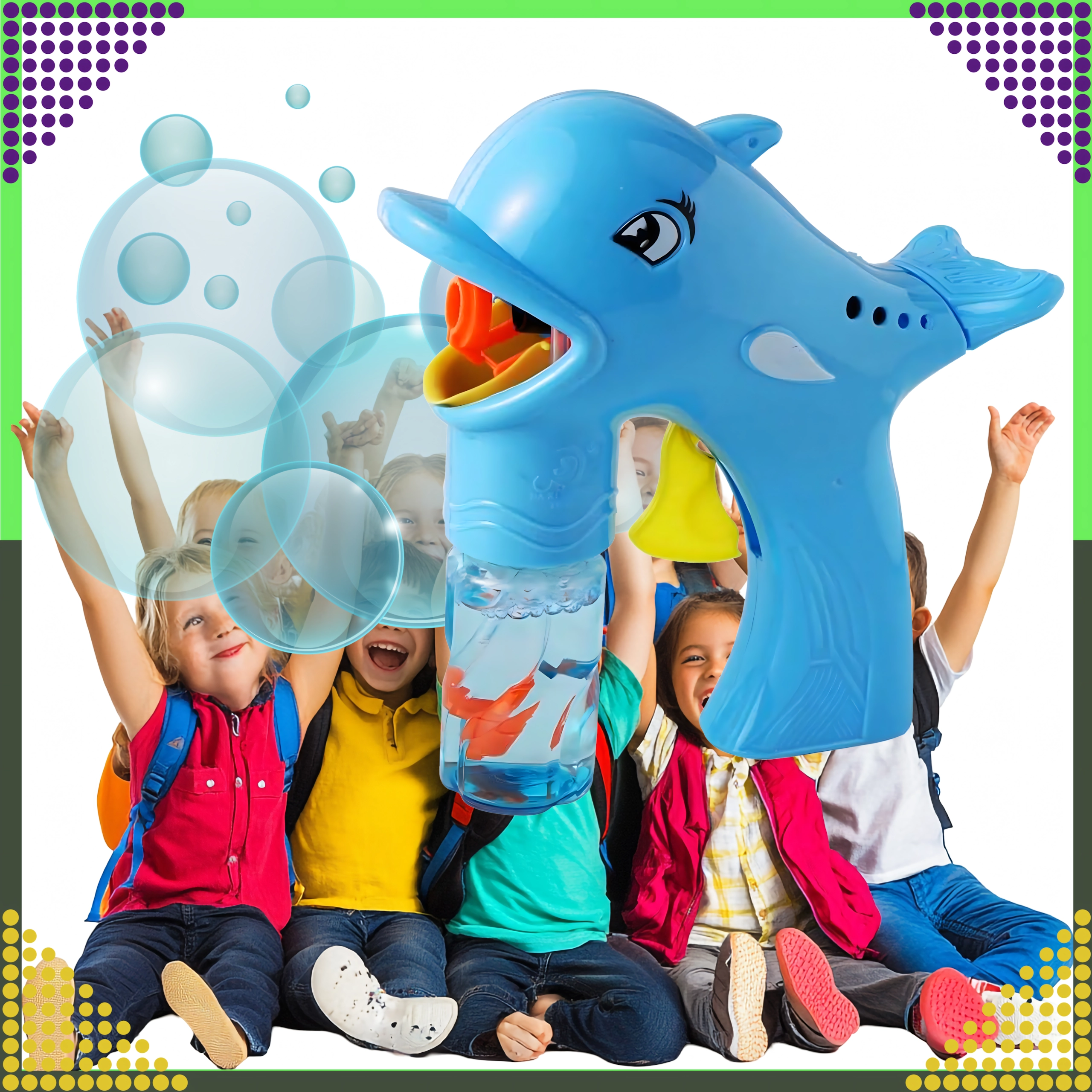 Lys enhver eftermiddag op med boblesjov! Sæbeboble-pistolen i delfinform sprøjter snesevis til hundreder af bobler ud på få sekunder, når flasken er monteret. Bare skru refillen på, tryk på aftrækkeren, og nyd et regnbueshow både ude og inde.