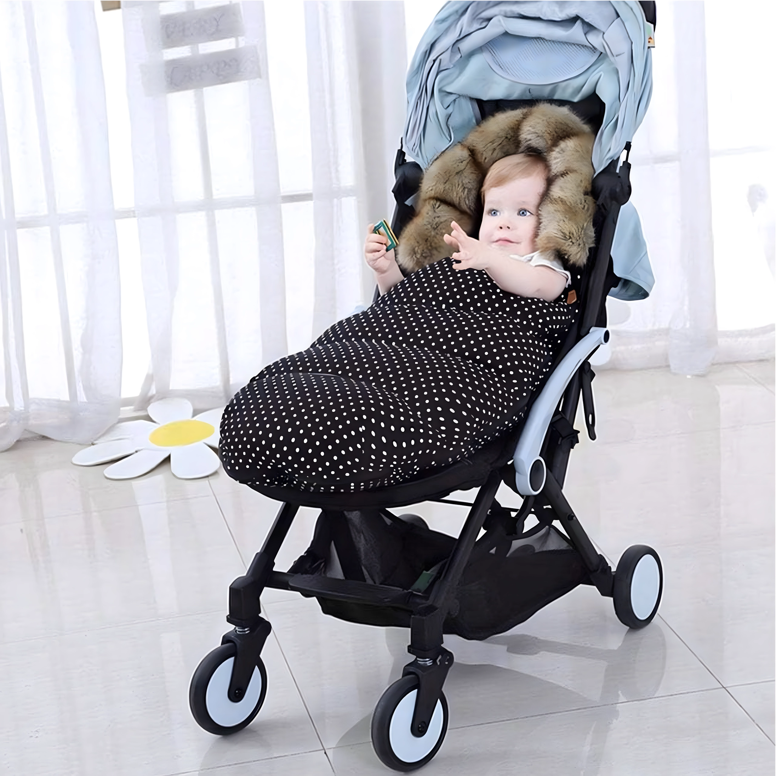 Den varme kørepose i målene 100 × 46 cm er ideel til vintergåture. Det ydre robuste, vandafvisende og vindtætte stof beskytter mod dårligt vejr, mens ultrablød mikrofleece indvendigt giver maksimal komfort for babyen. Hætten med øko‑kunstpels hjælper med bedre isolering og beskytter mod kold vind og sne.