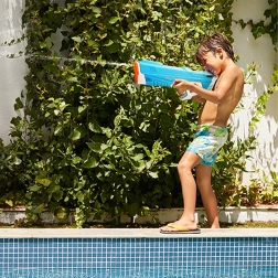 Hurtig automatisk påfyldning og driftssikker elektrisk motor gør betjeningen enkel, så børnene kan fokusere på legen. Den lange rækkevidde på op til 10 m gør hver leg til en spændende vandkamp.