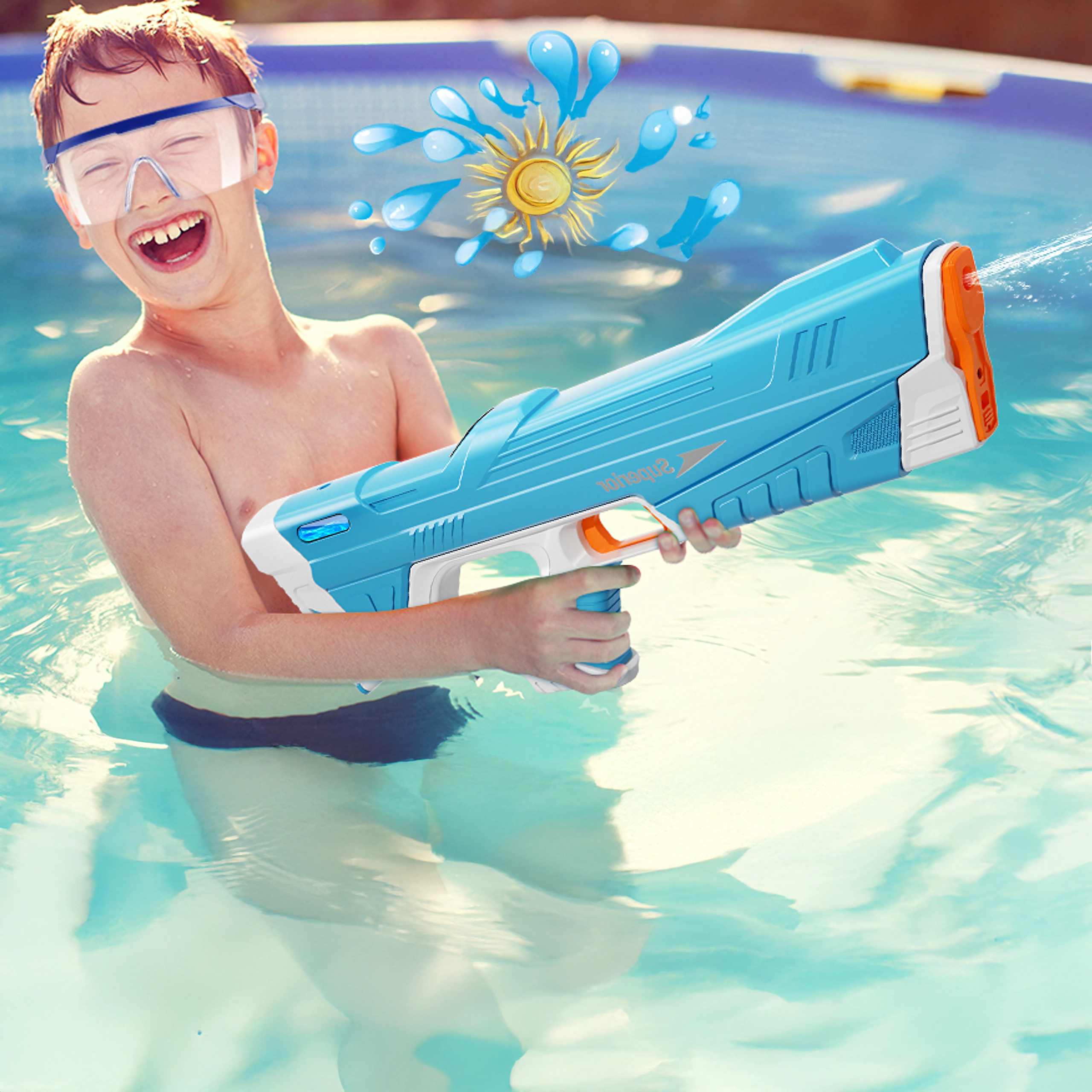Den elektriske vandpistol giver komfort uden pumpning og lang driftstid takket være USB-opladning. Ergonomisk greb, robust plastkonstruktion og en dynamisk vandstråle sikrer actionfyldte dueller ved poolen og på stranden.