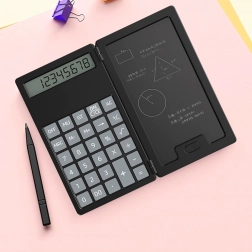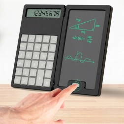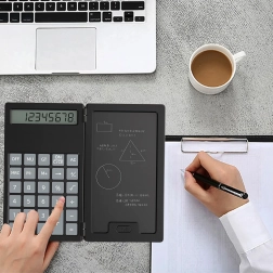 Denne smarte lommeregner med sammenklappeligt kabinet kombinerer klassiske beregninger med en praktisk LCD-skrivetavle til noter. Takket være den lette og slanke konstruktion kan den nemt lægges i taske eller lomme, så du altid har den ved hånden til hurtige beregninger og noter.