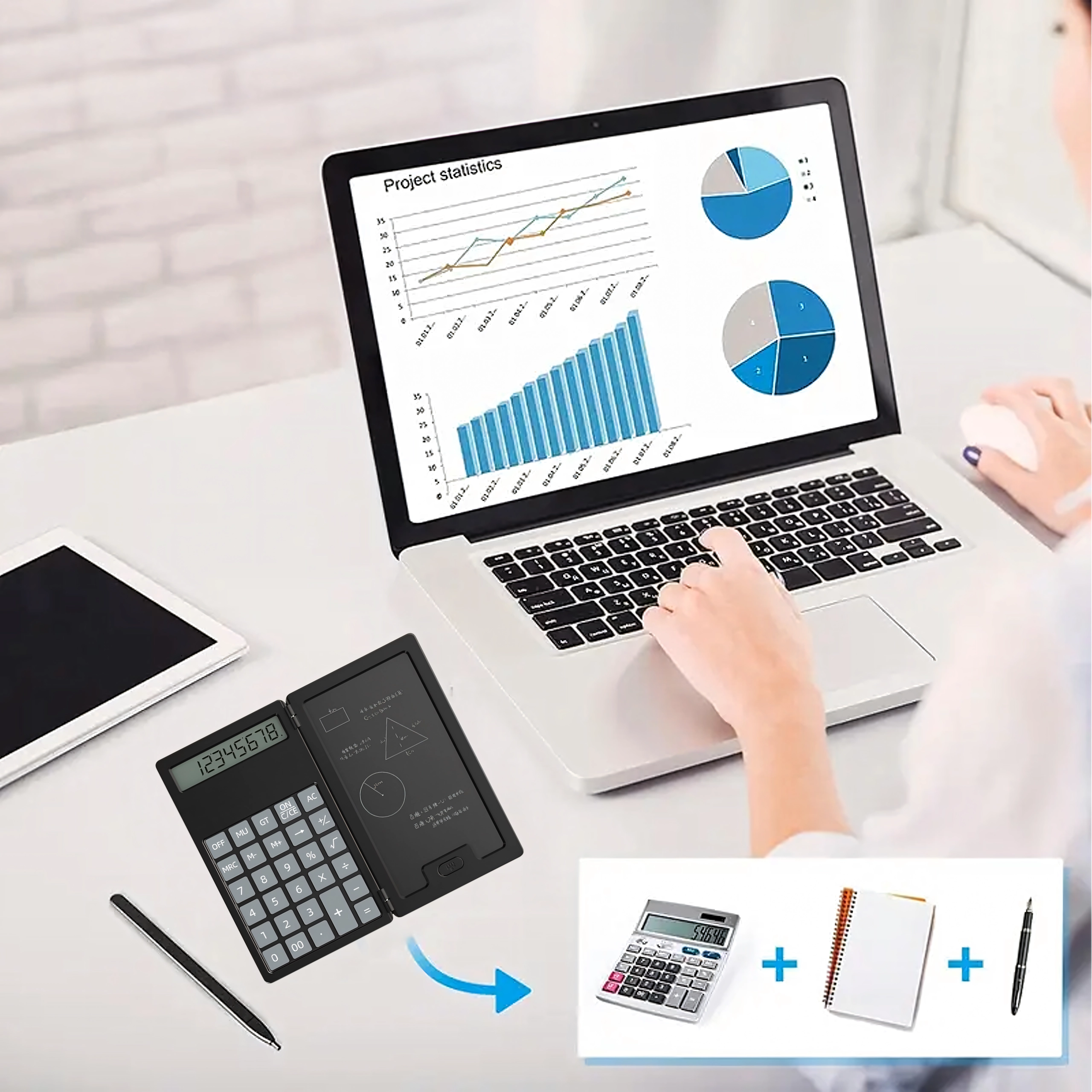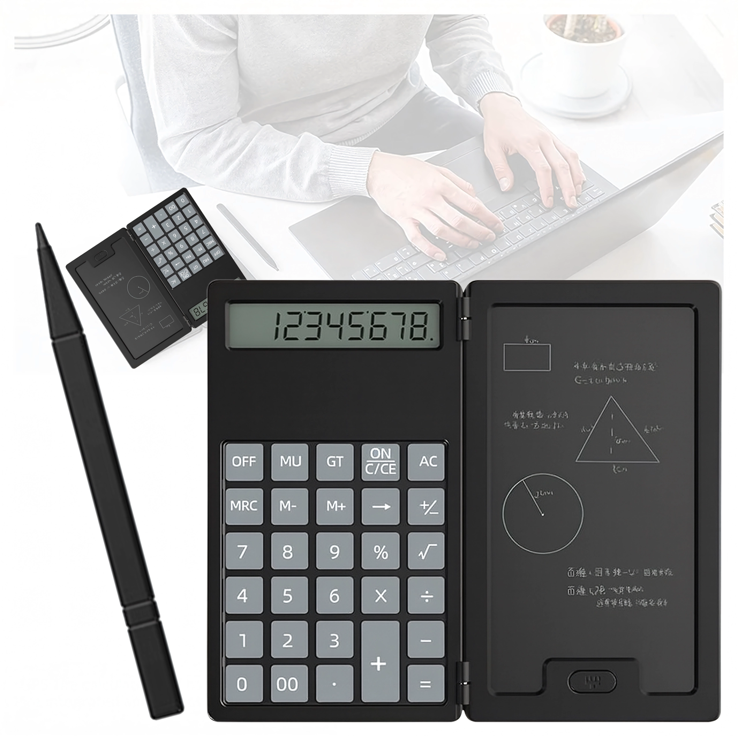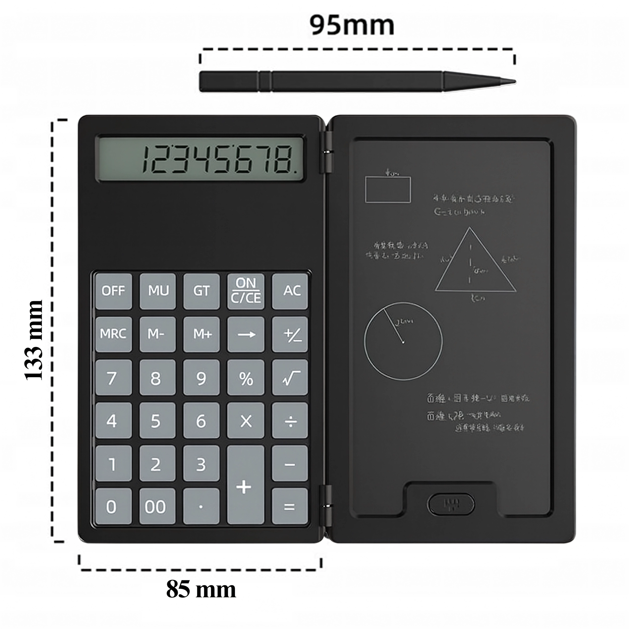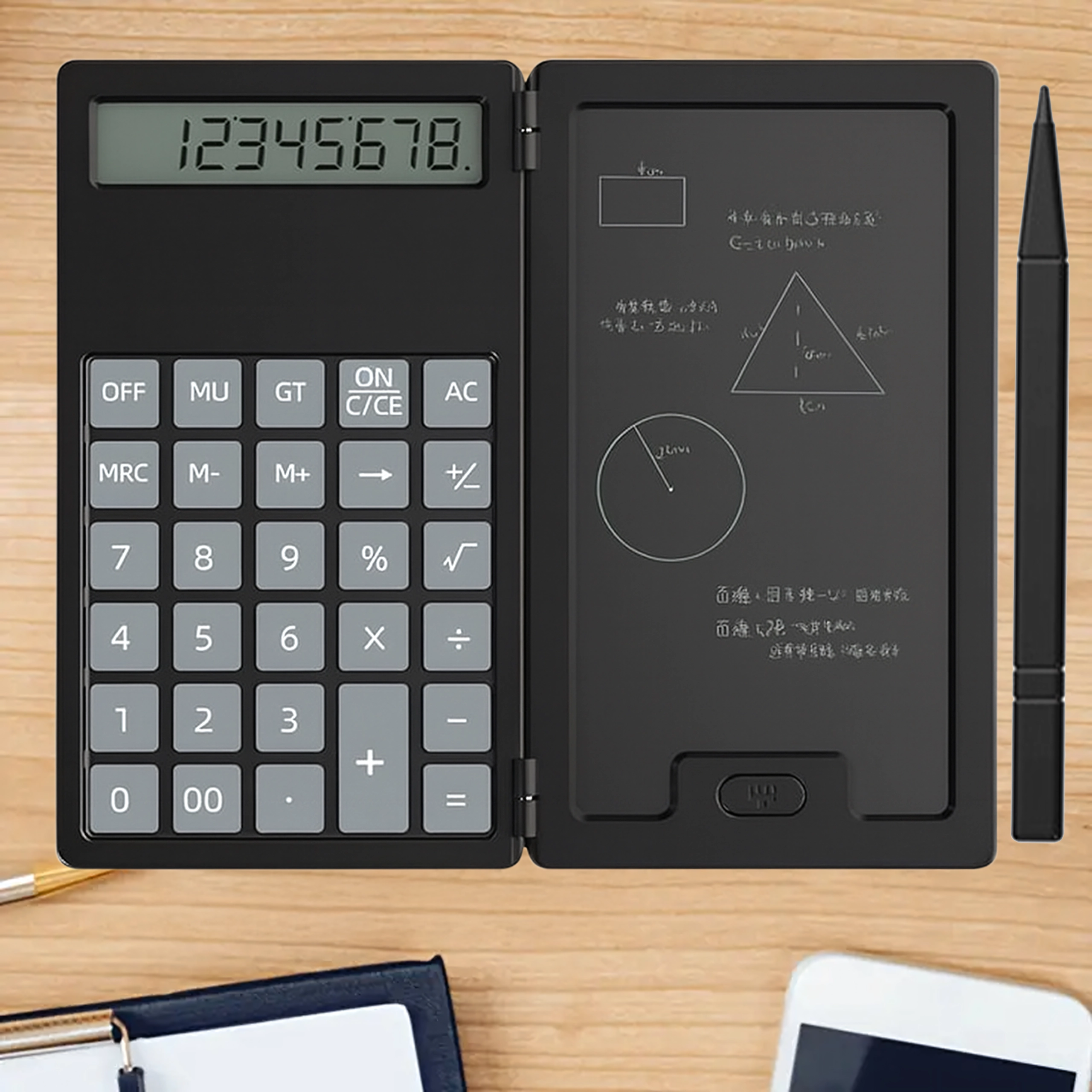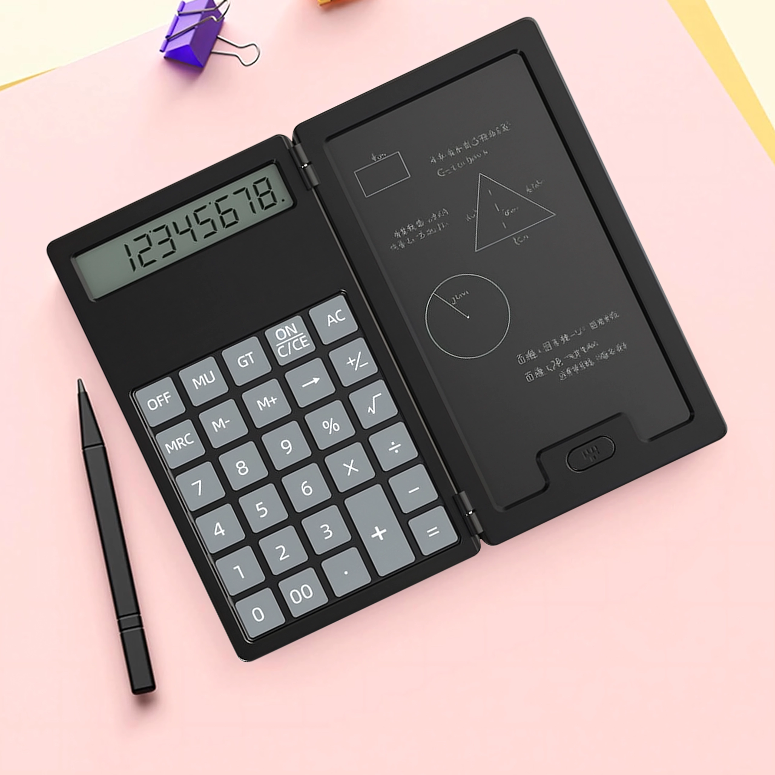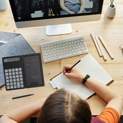 LCD-notesblokken giver mulighed for at skrive med stylus, slette med ét tryk og vende tilbage til beregninger uden unødigt papirspild. Enheden er fantastisk til studerende, bogholdere og daglig brug i hjemmet.