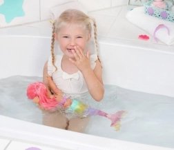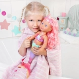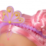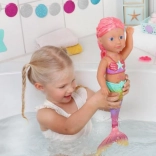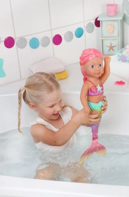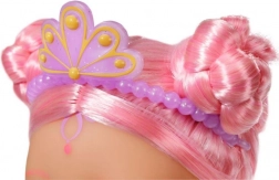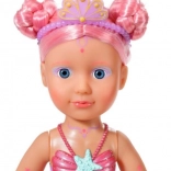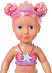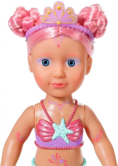 BABY born Lille havprinsesse er en uimodståelig dukke med langt pink hår, pyntet med et lilla pandebånd. Dukkens finne er smukt farvet, glitrende og bevæger sig, når den kommer i kontakt med vand, hvilket skaber en magisk atmosfære. Den har en badedragt med muslingmønster, der matcher halen perfekt.
